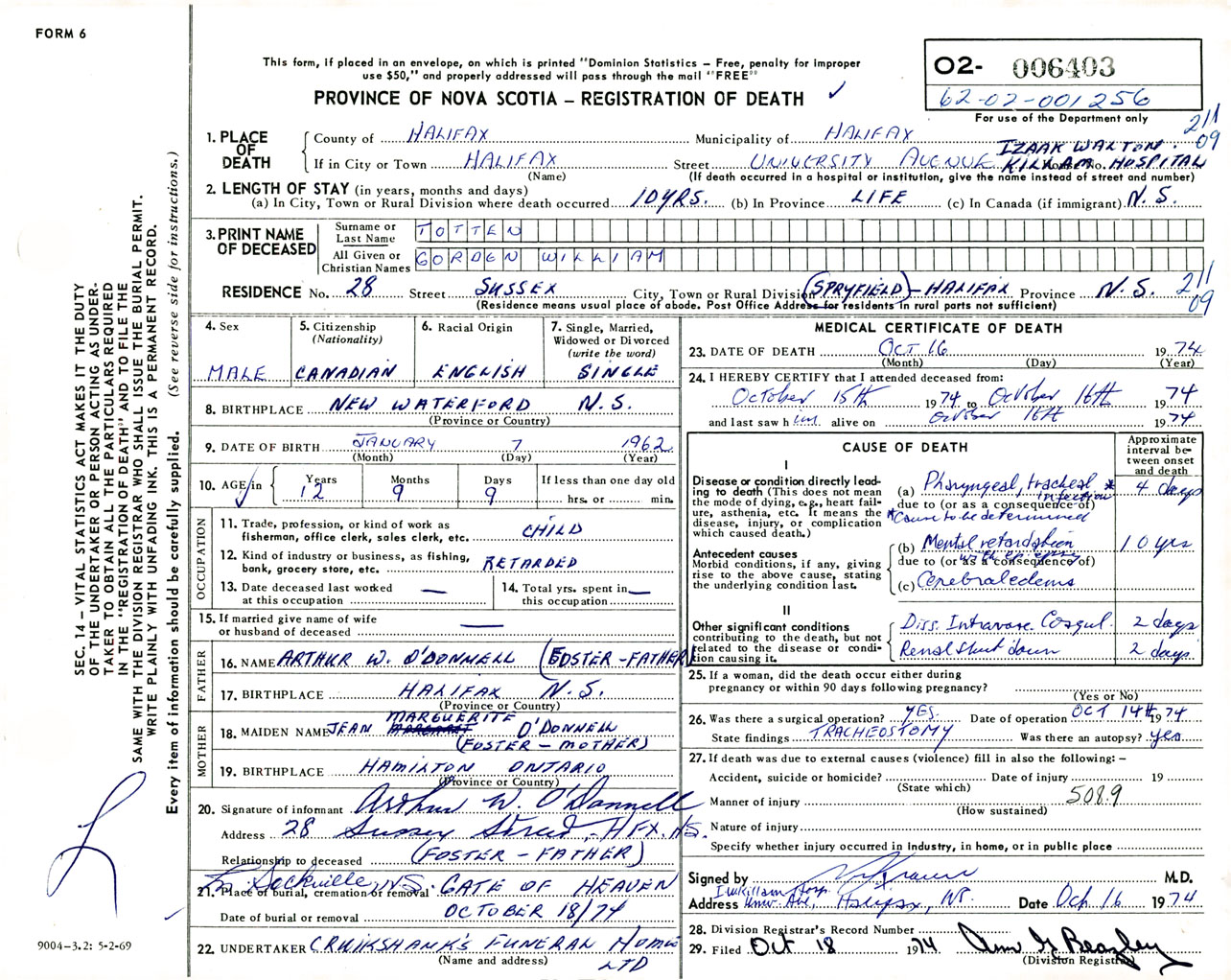 Male Death Registration: Year: 1974 number: 6403