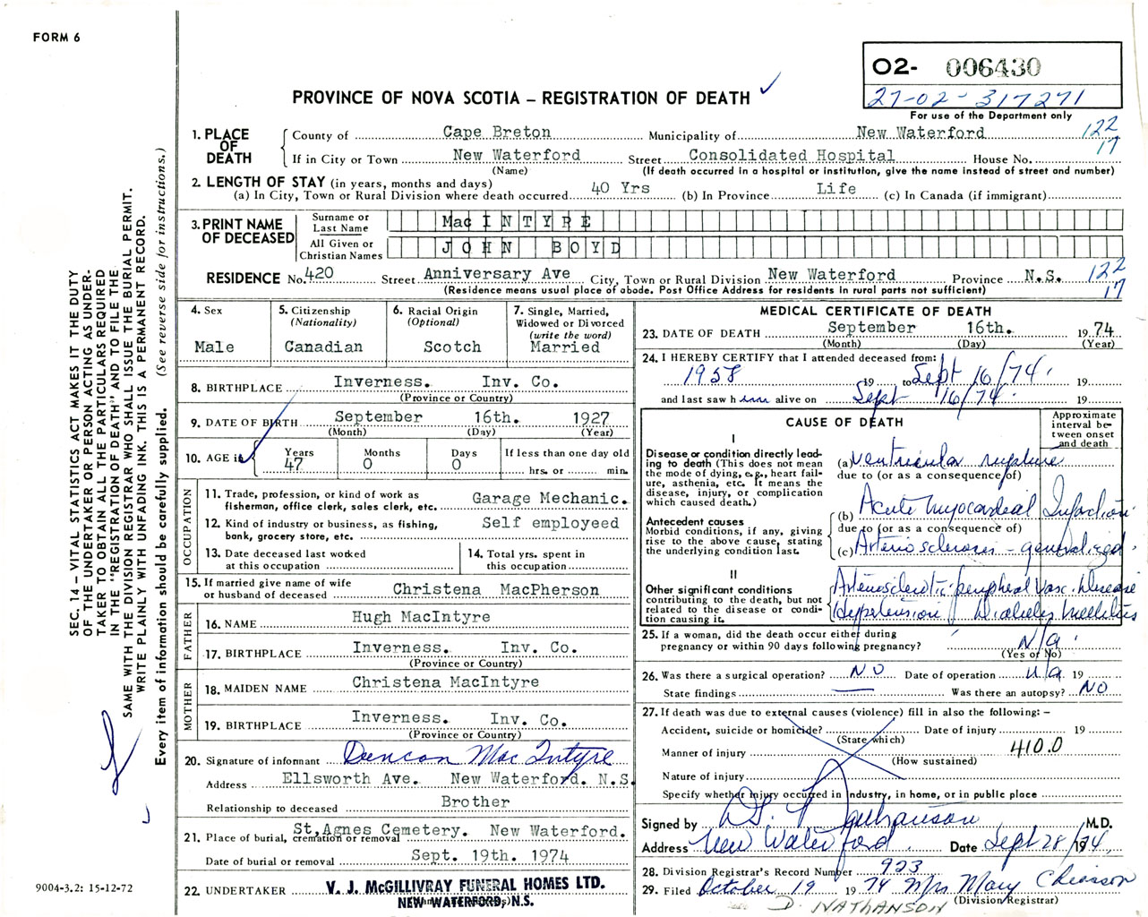 Male Death Registration: Year: 1974 number: 6430
