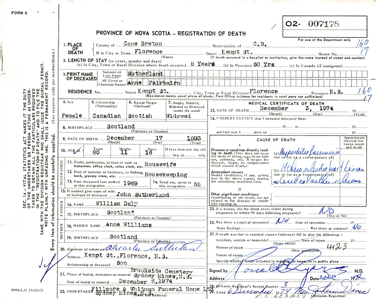 Female Death Registration: Year: 1974 number: 7178