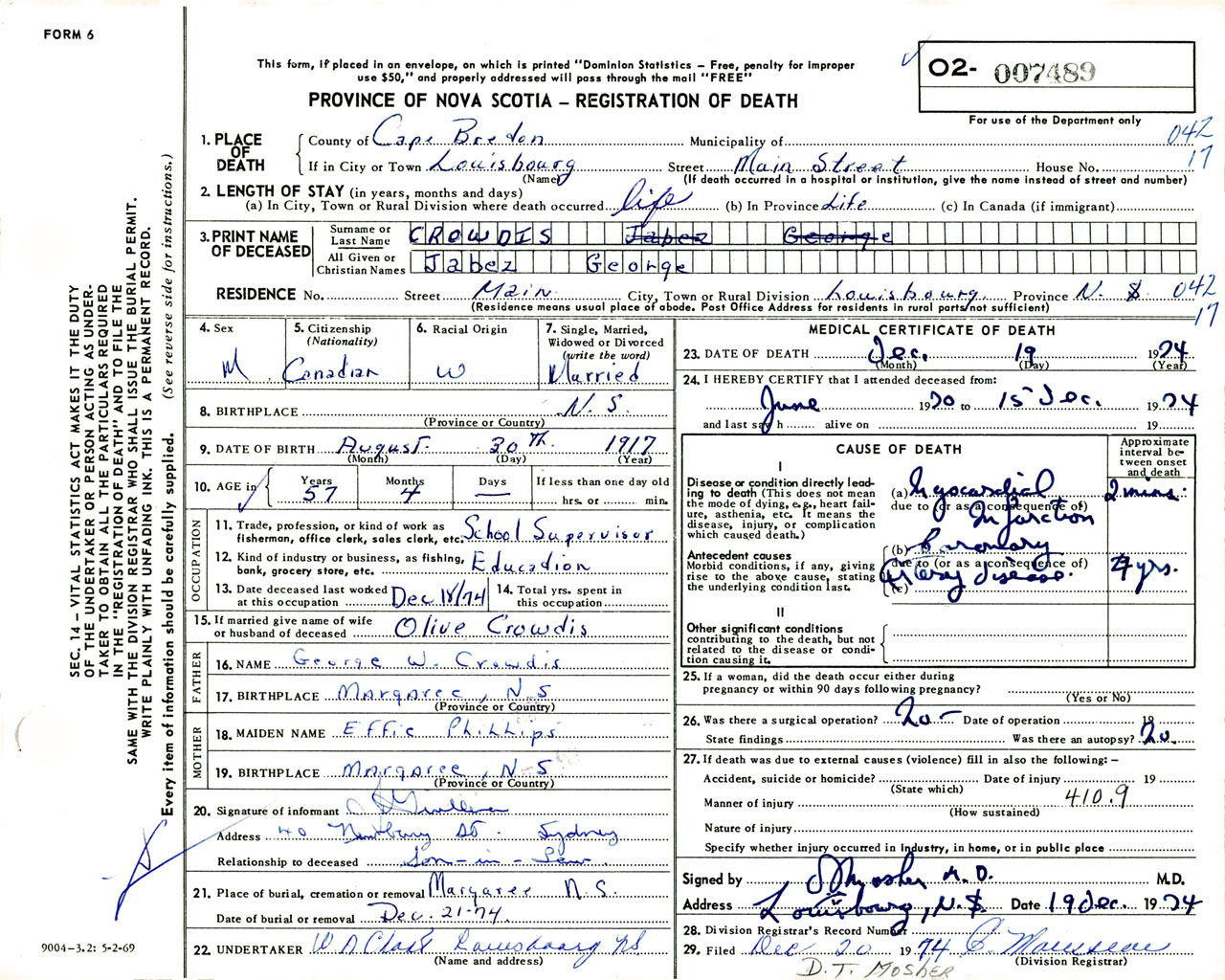 Male Death Registration: Year: 1974 number: 7489