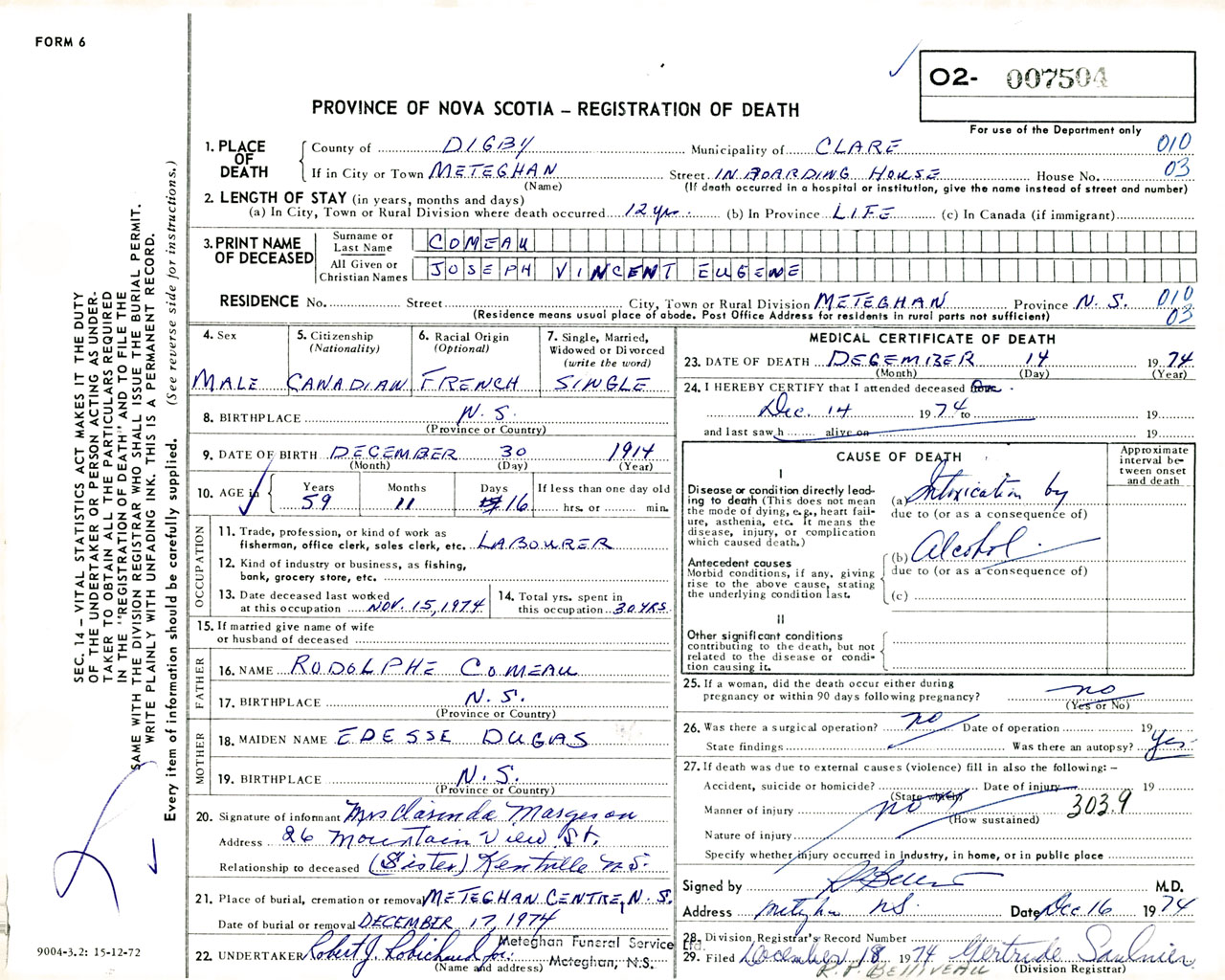 Male Death Registration: Year: 1974 number: 7504