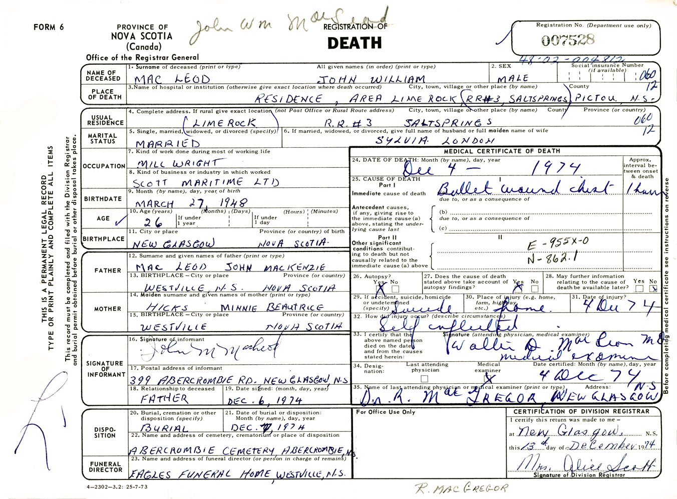 Male Death Registration: Year: 1974 number: 7528