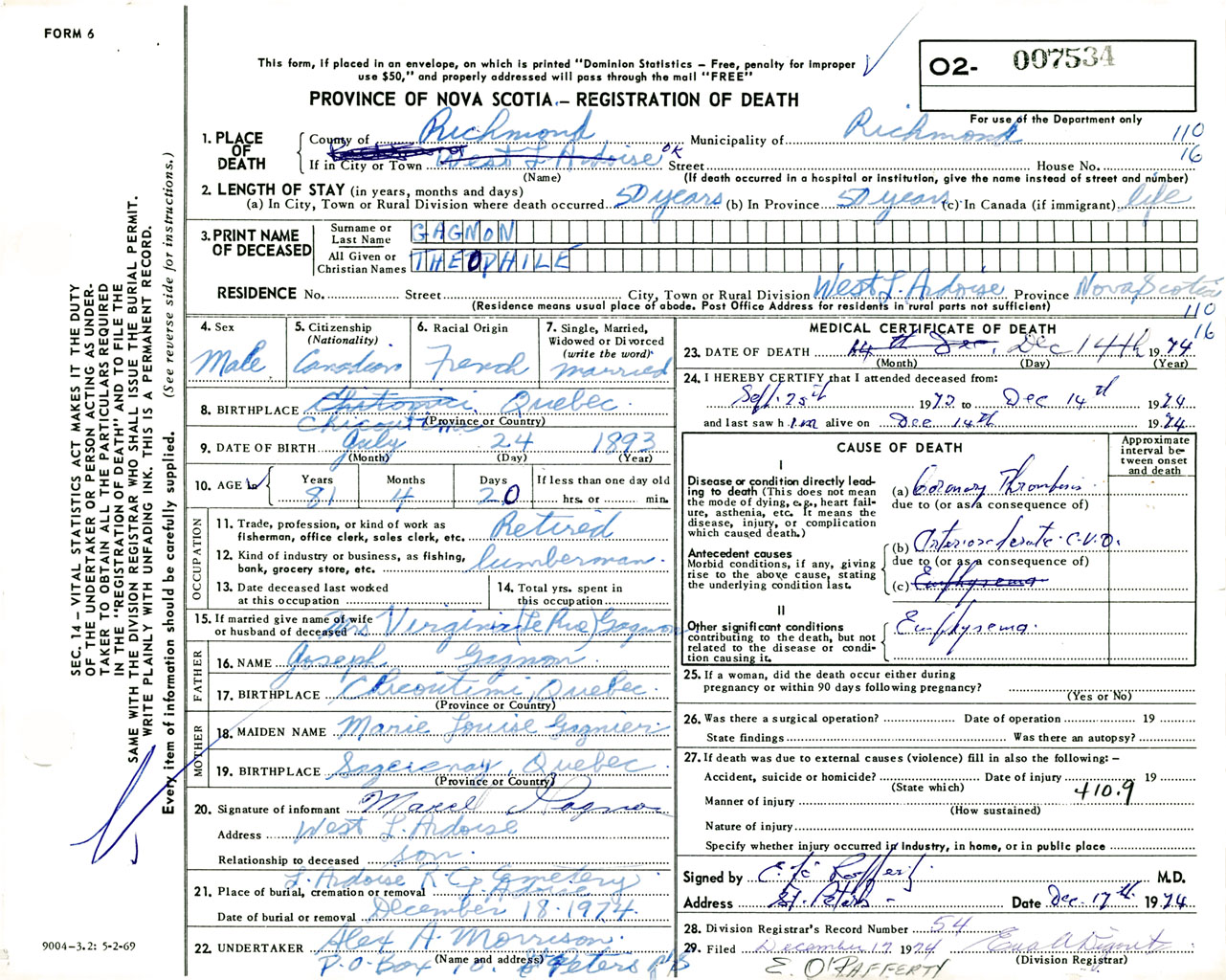 Male Death Registration: Year: 1974 number: 7534