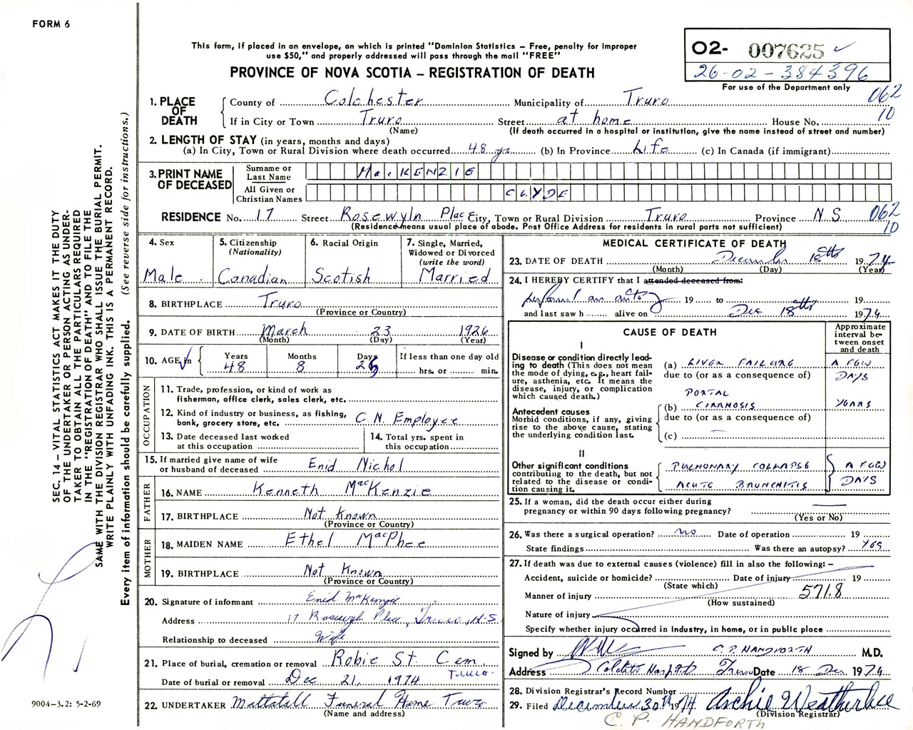 Male Death Registration: Year: 1974 number: 7625