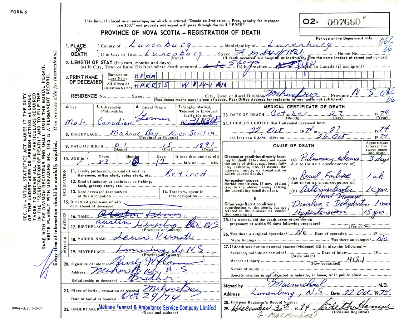 Male Death Registration: Year: 1974 number: 7660