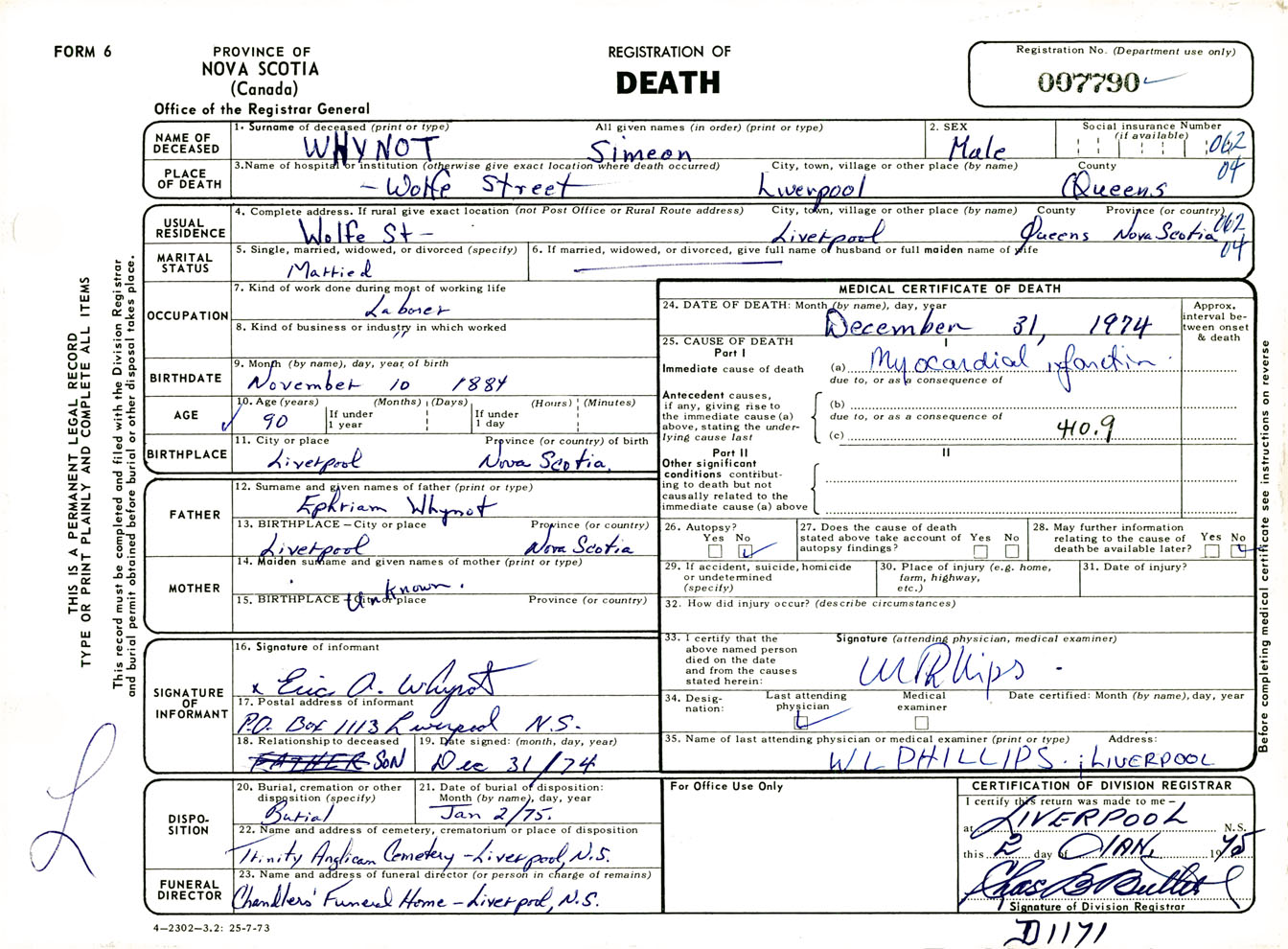 Male Death Registration: Year: 1974 number: 7790
