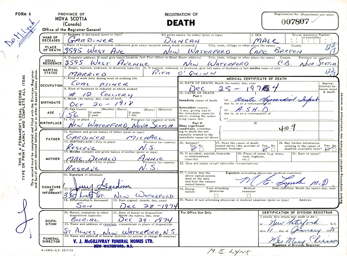 Male Death Registration: Year: 1974 number: 7807