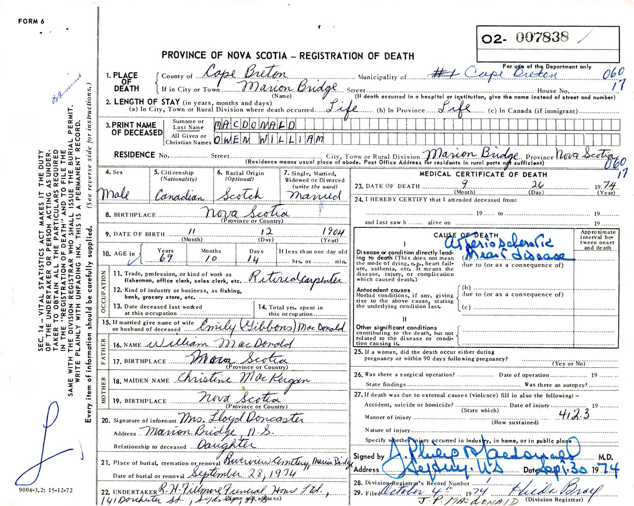 Male Death Registration: Year: 1974 number: 7838