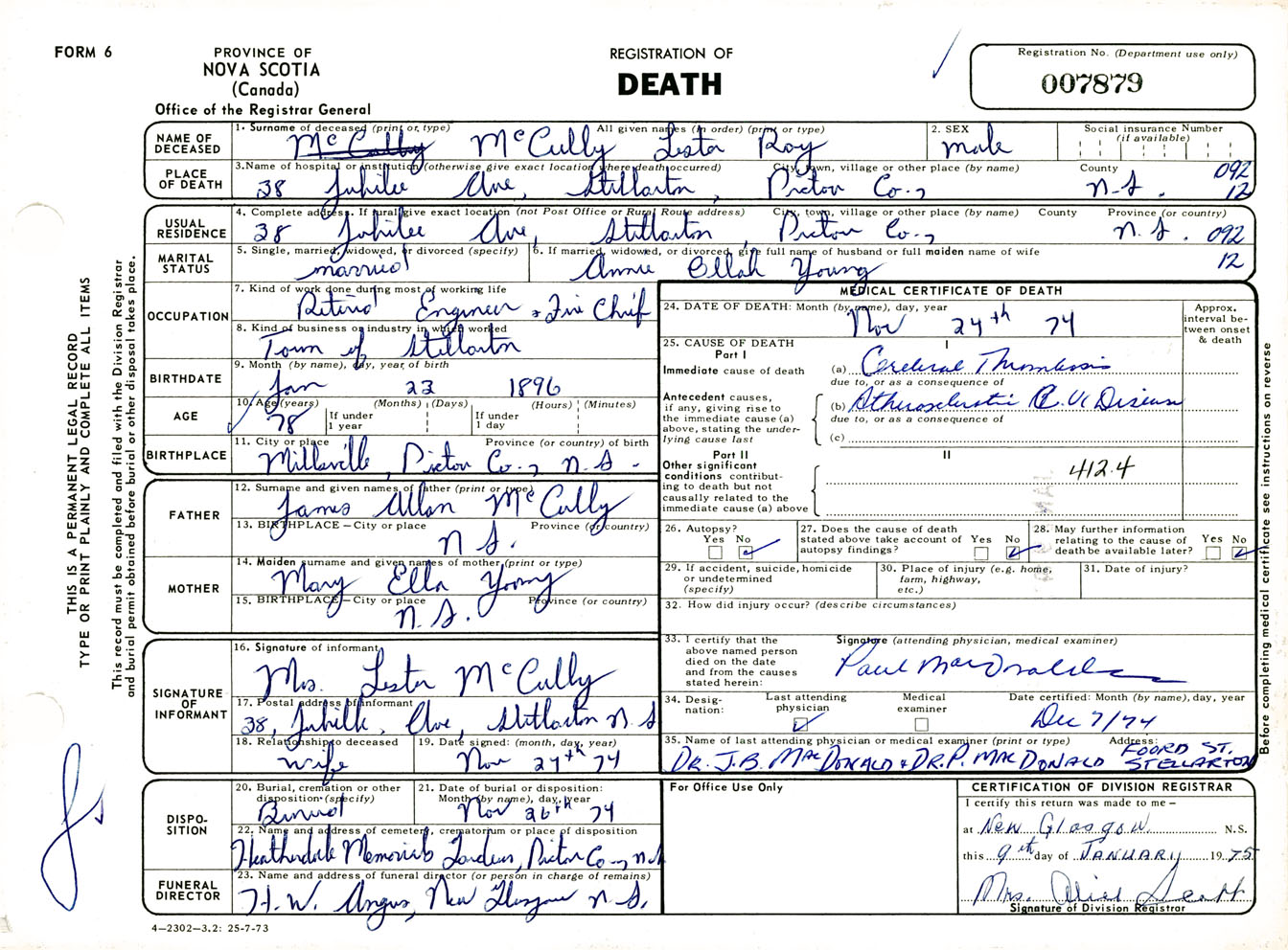 Male Death Registration: Year: 1974 number: 7879