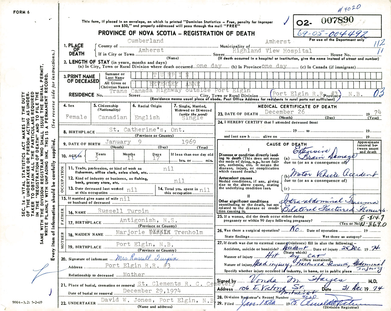Female Death Registration: Year: 1974 number: 7890