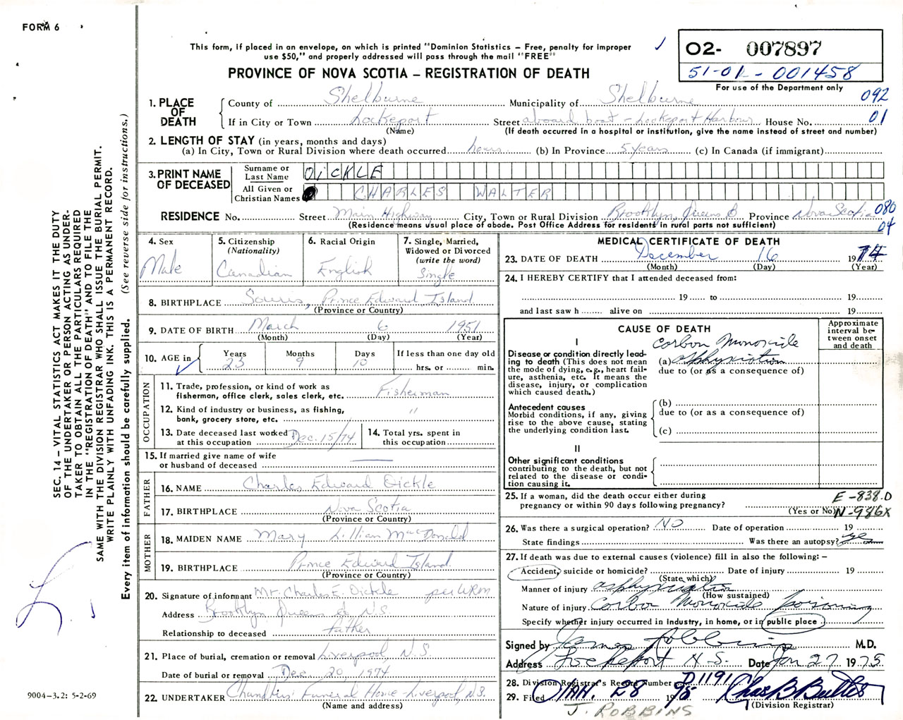 Male Death Registration: Year: 1974 number: 7897