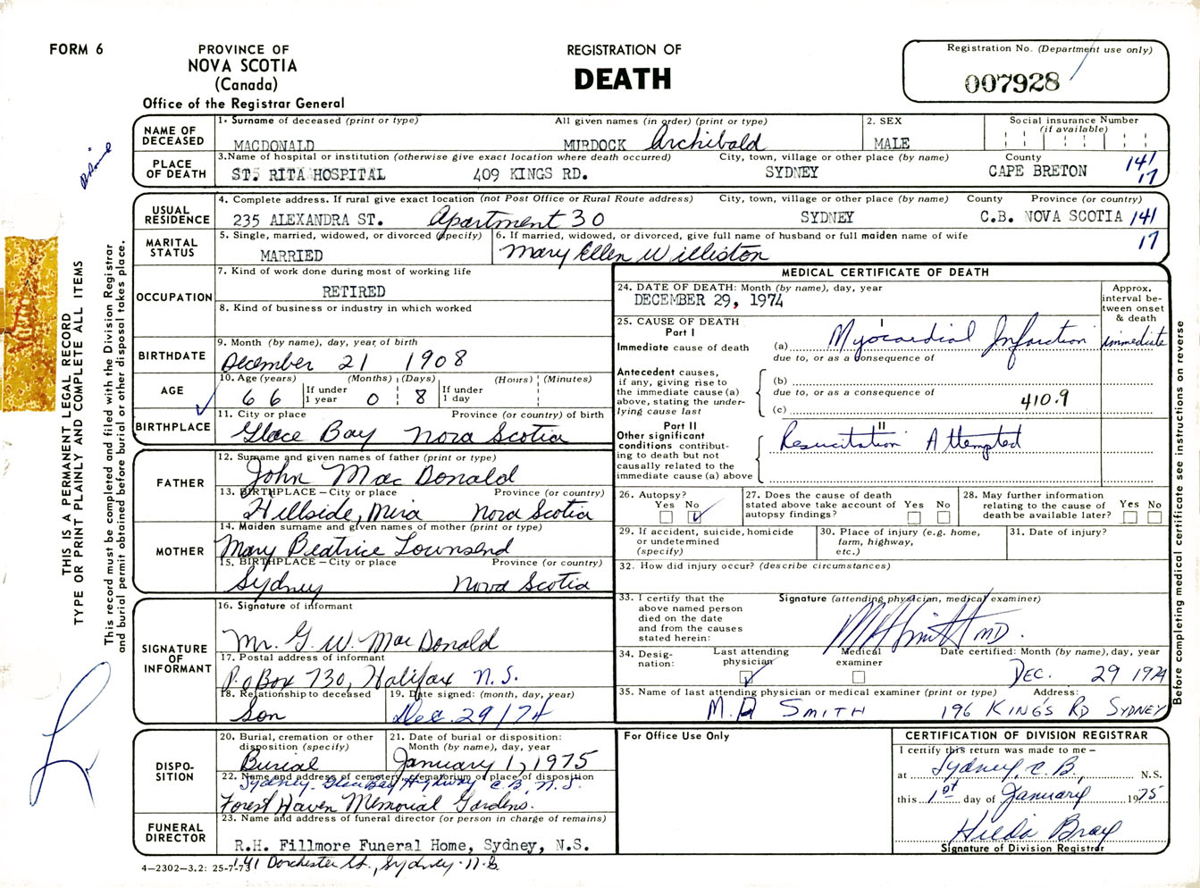 Male Death Registration: Year: 1974 number: 7928