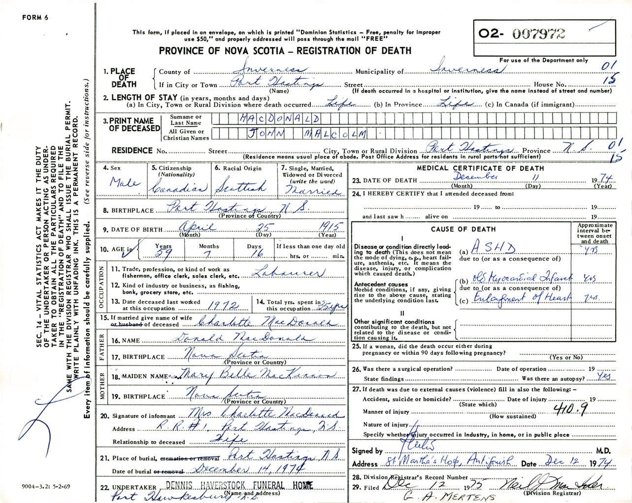 Male Death Registration: Year: 1974 number: 7972