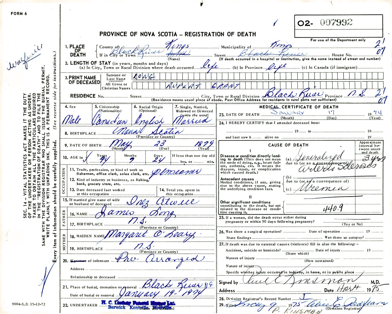 Male Death Registration: Year: 1974 number: 7992