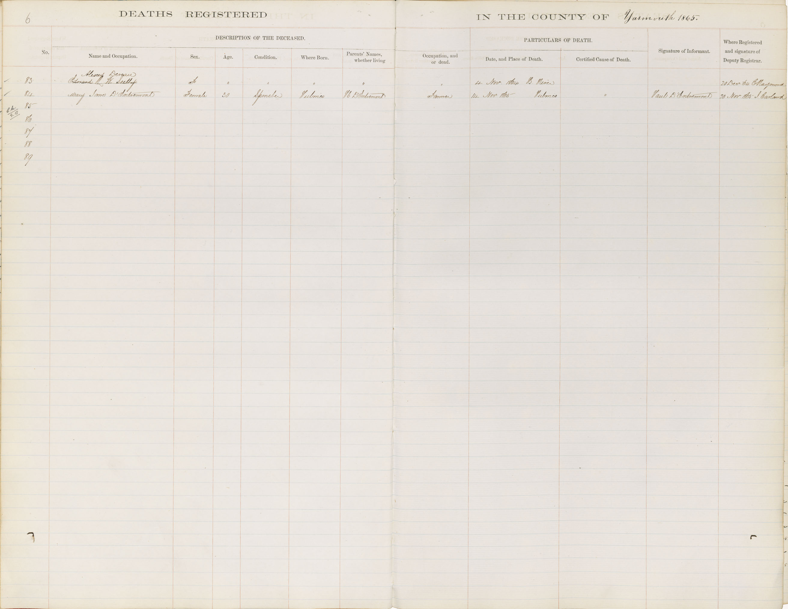 Death Registration: Year: 1865 book: 1818 page: 6 number: 84