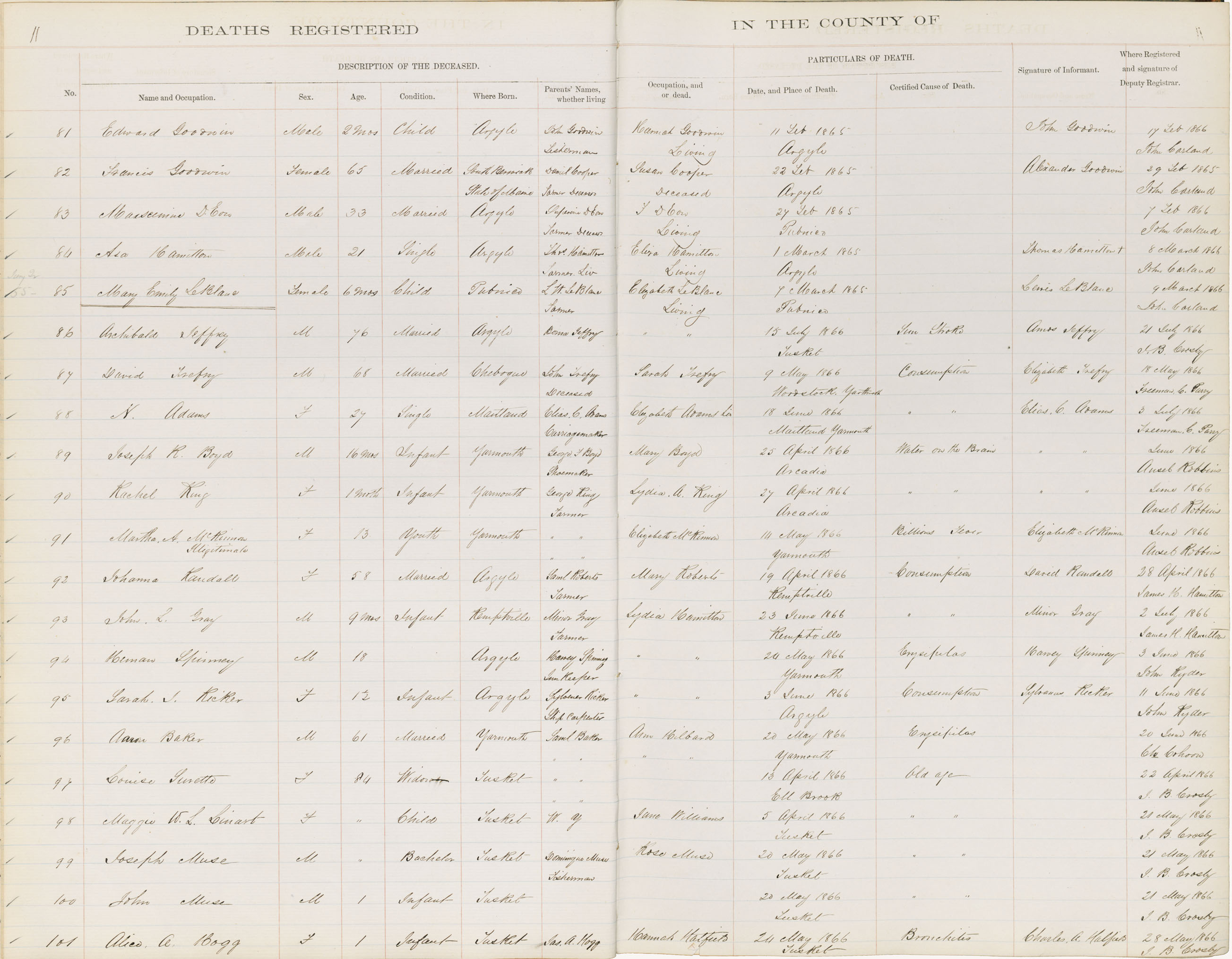 Death Registration: Year: 1866 book: 1818 page: 11 number: 101