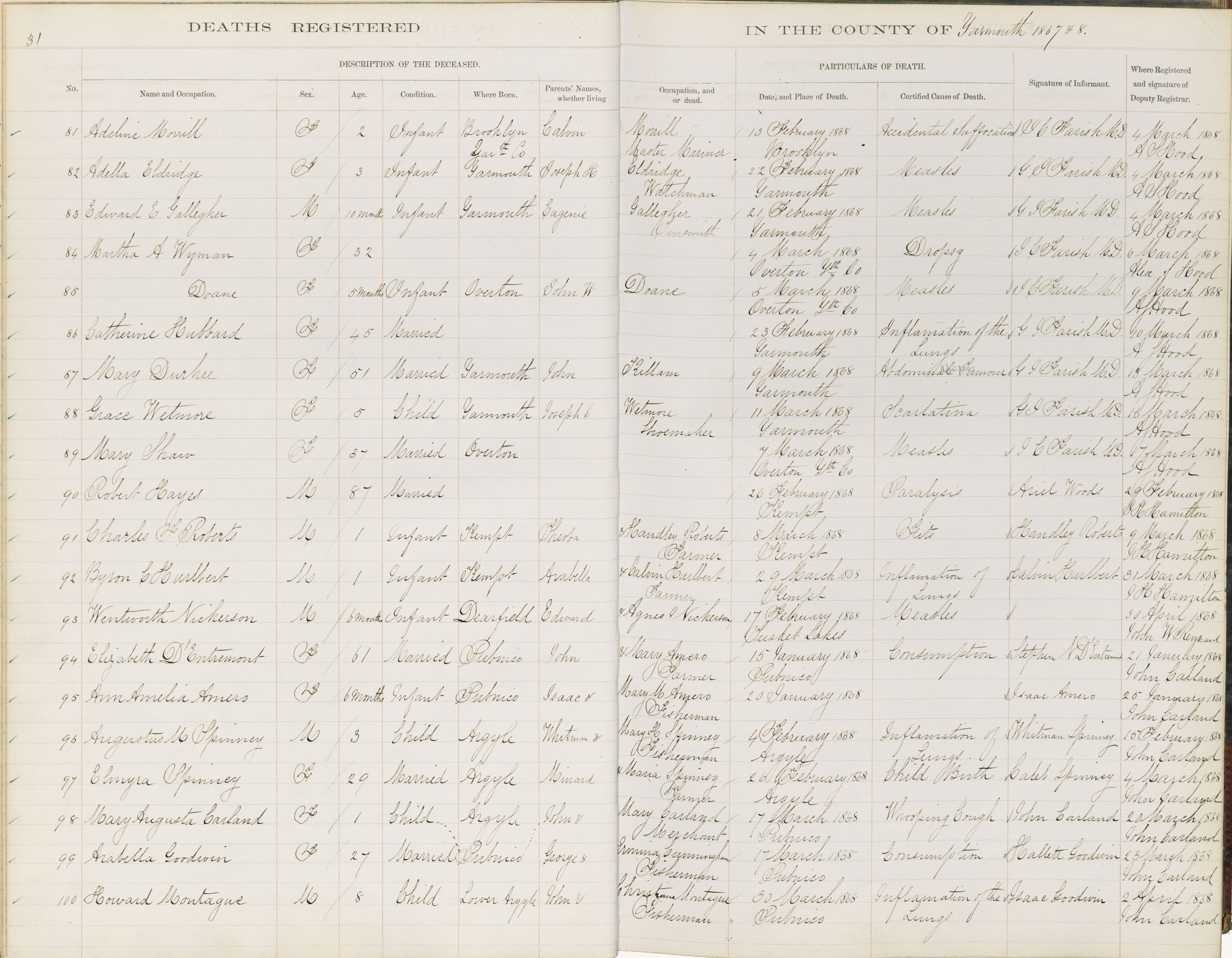 Death Registration: Year: 1868 book: 1818 page: 31 number: 100