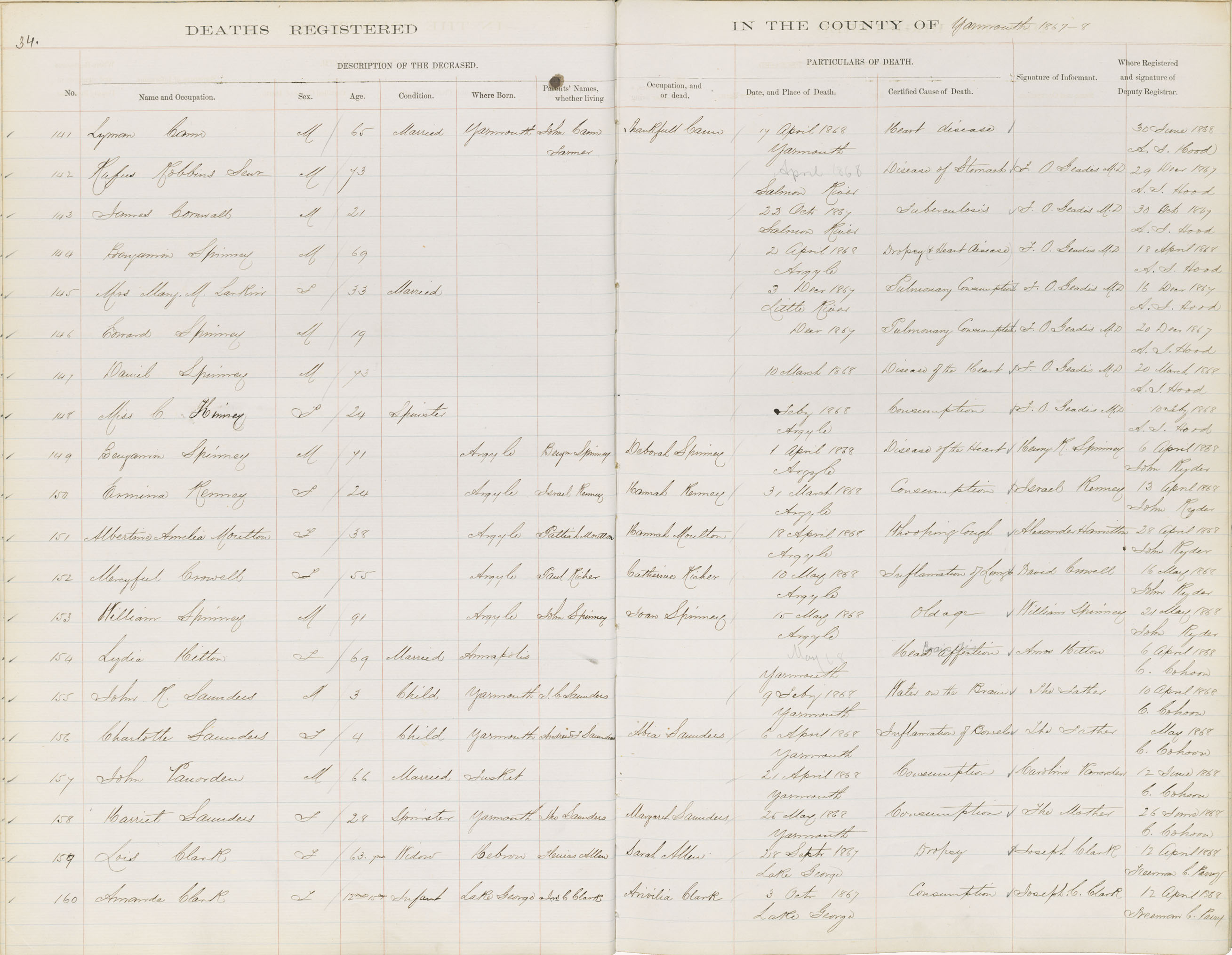 Death Registration: Year: 1867 book: 1818 page: 34 number: 160
