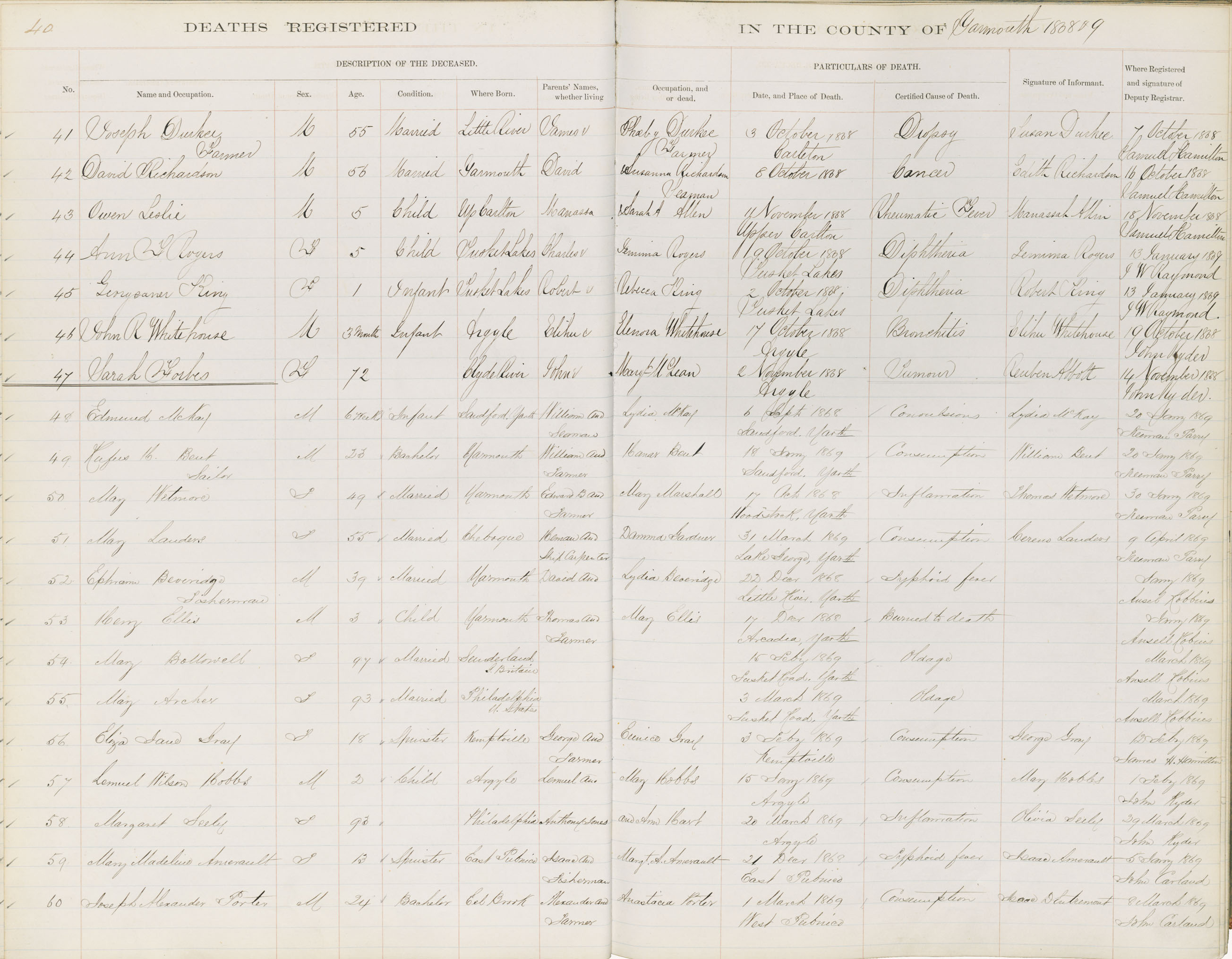 Death Registration: Year: 1868 book: 1818 page: 40 number: 50