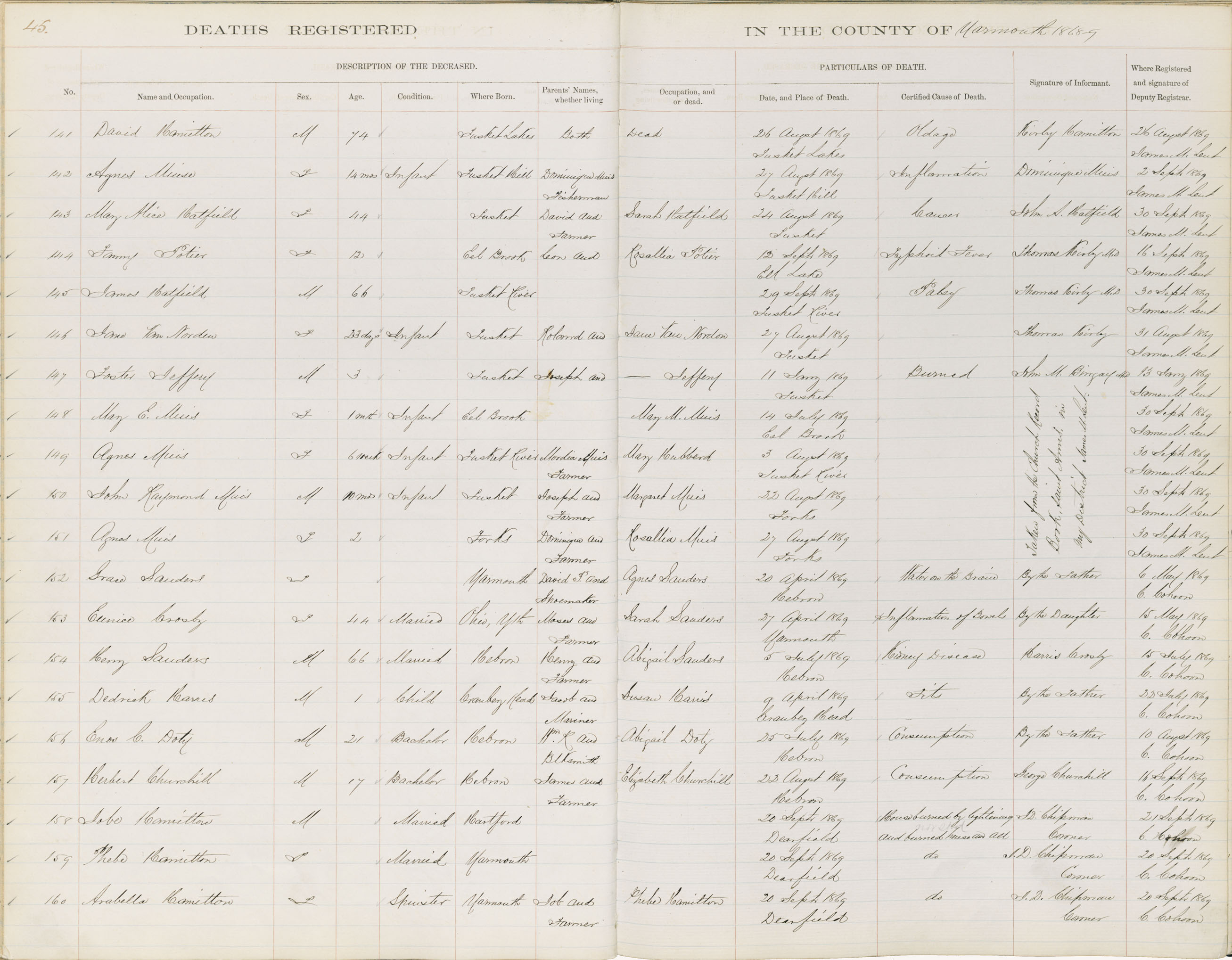 Death Registration: Year: 1869 book: 1818 page: 45 number: 141