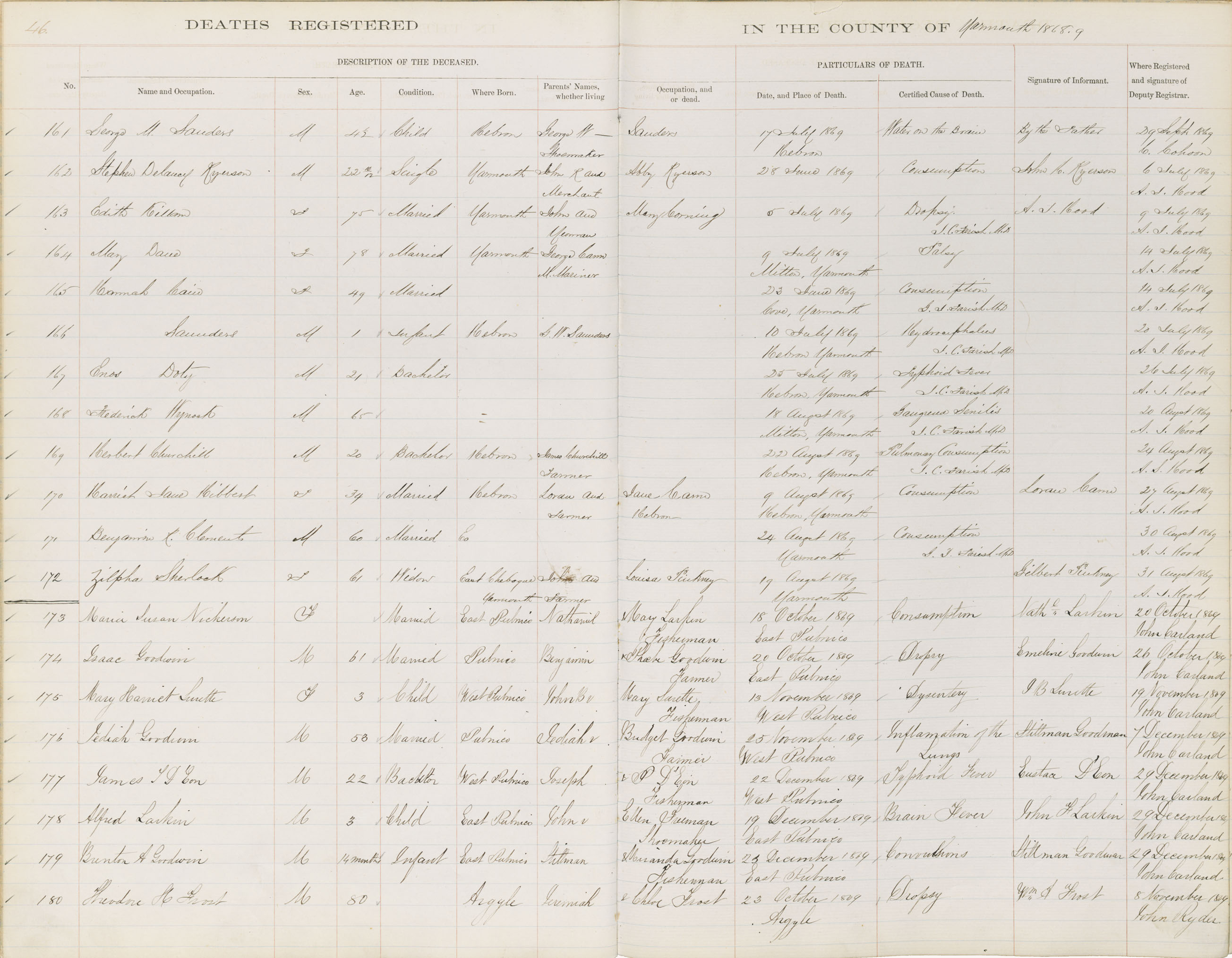Death Registration: Year: 1869 book: 1818 page: 46 number: 161
