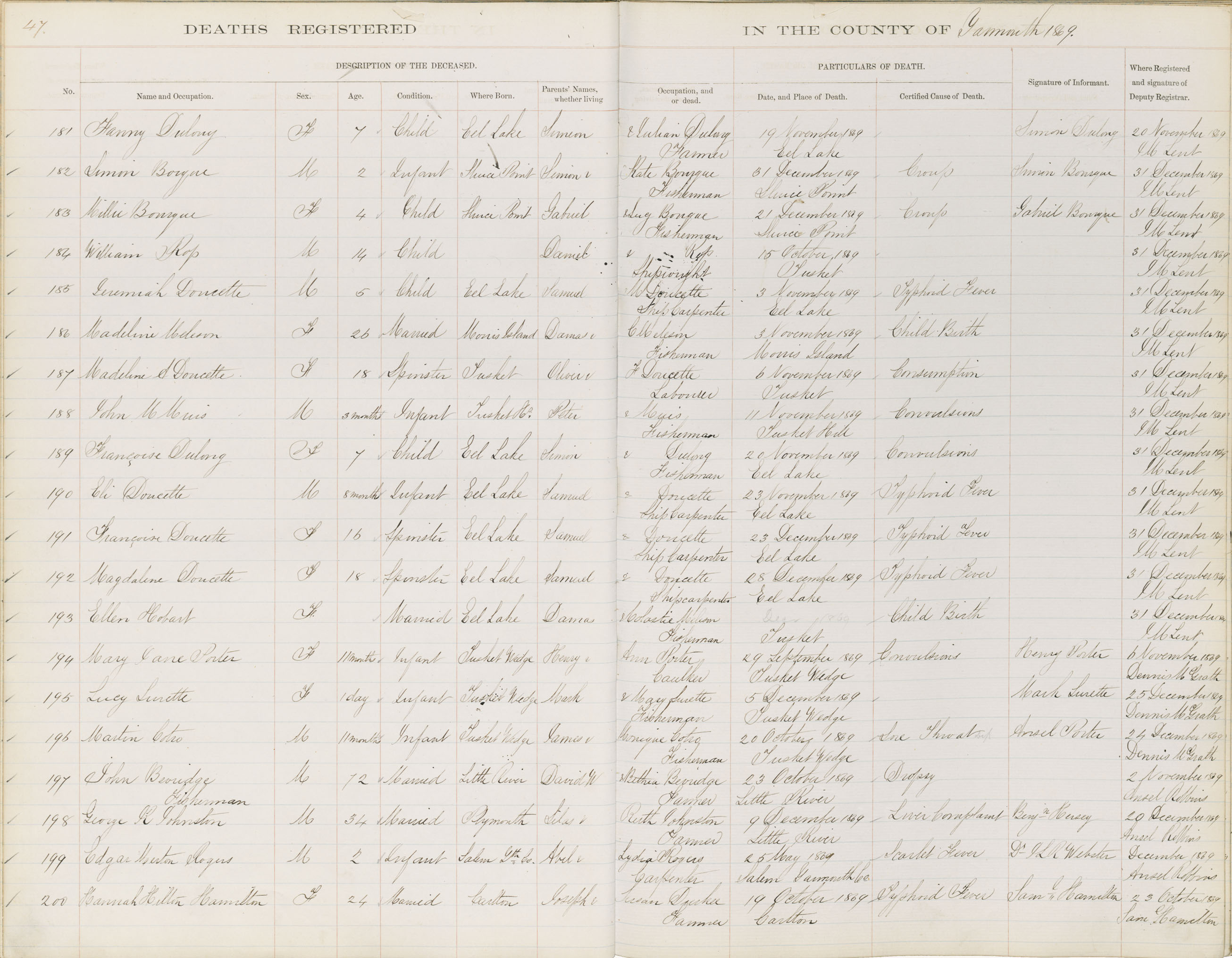 Death Registration: Year: 1869 book: 1818 page: 47 number: 181