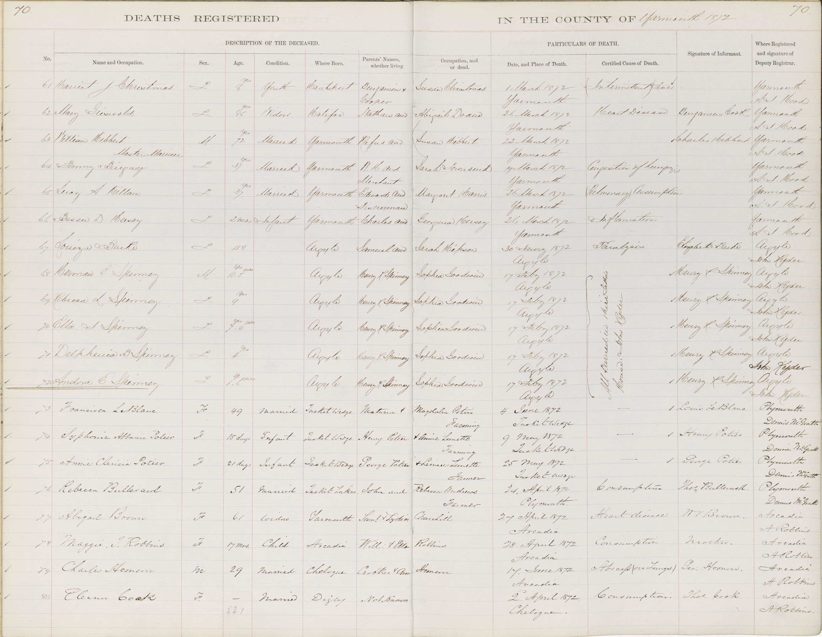 Death Registration: Year: 1872 book: 1818 page: 70 number: 80