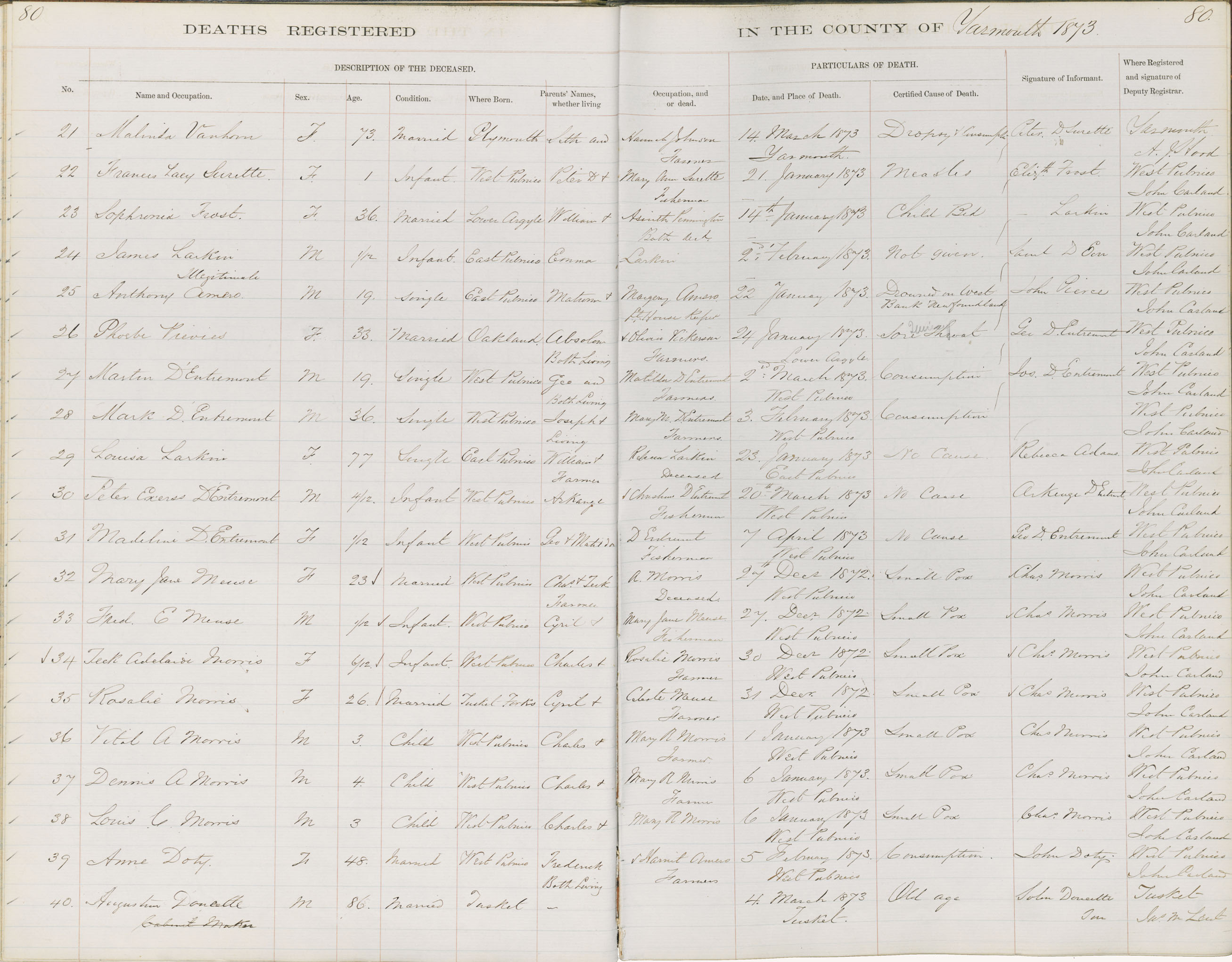 Death Registration: Year: 1873 book: 1818 page: 80 number: 40