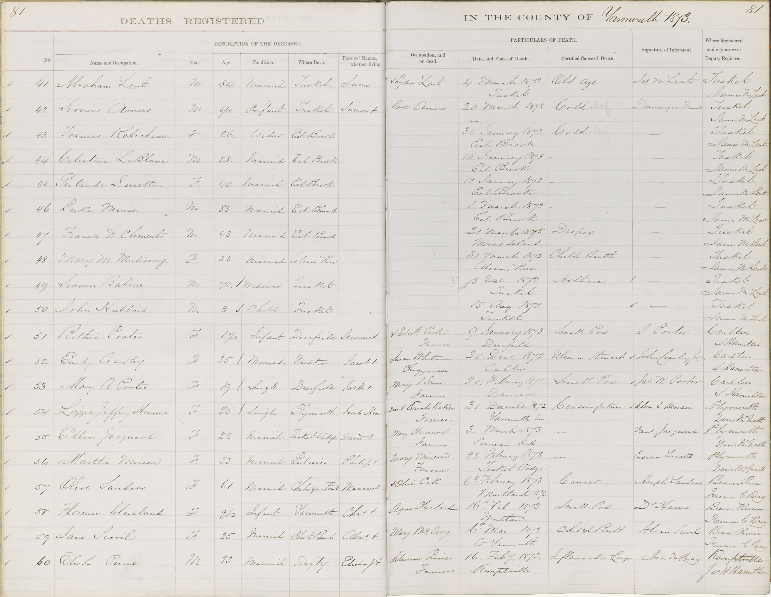 Death Registration: Year: 1873 book: 1818 page: 81 number: 60