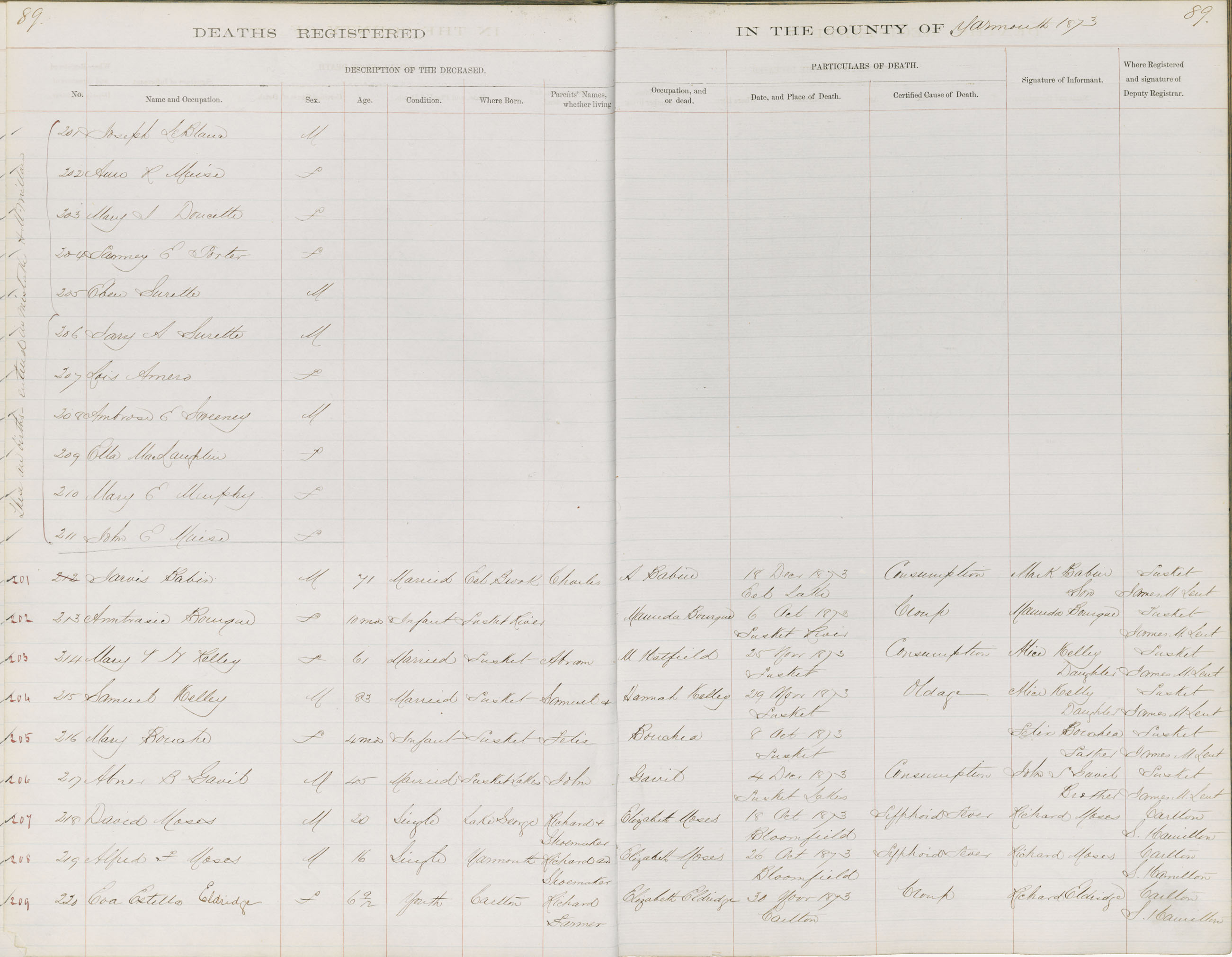 Death Registration: Year: 1873 book: 1818 page: 89 number: 209
