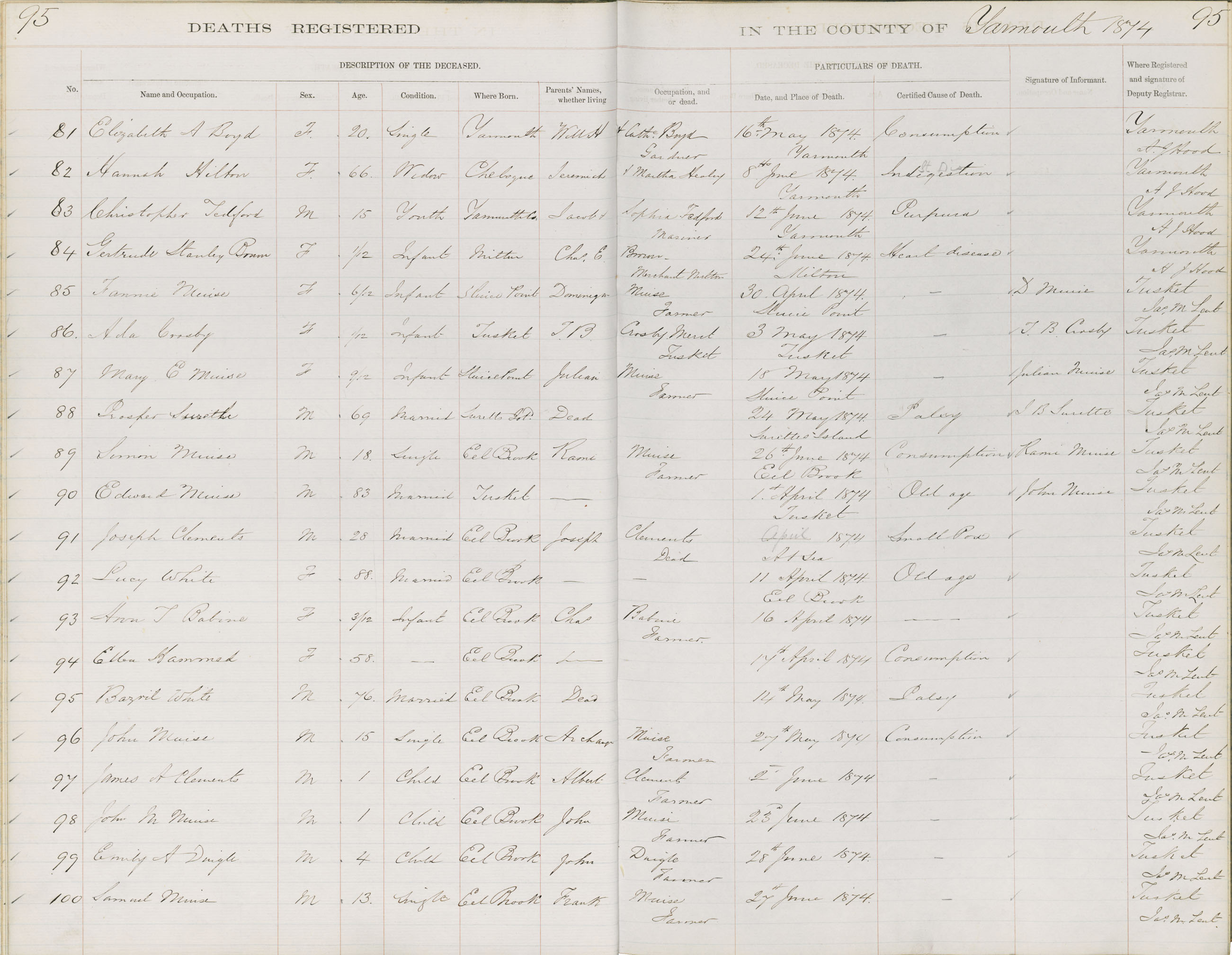 Death Registration: Year: 1874 book: 1818 page: 95 number: 81