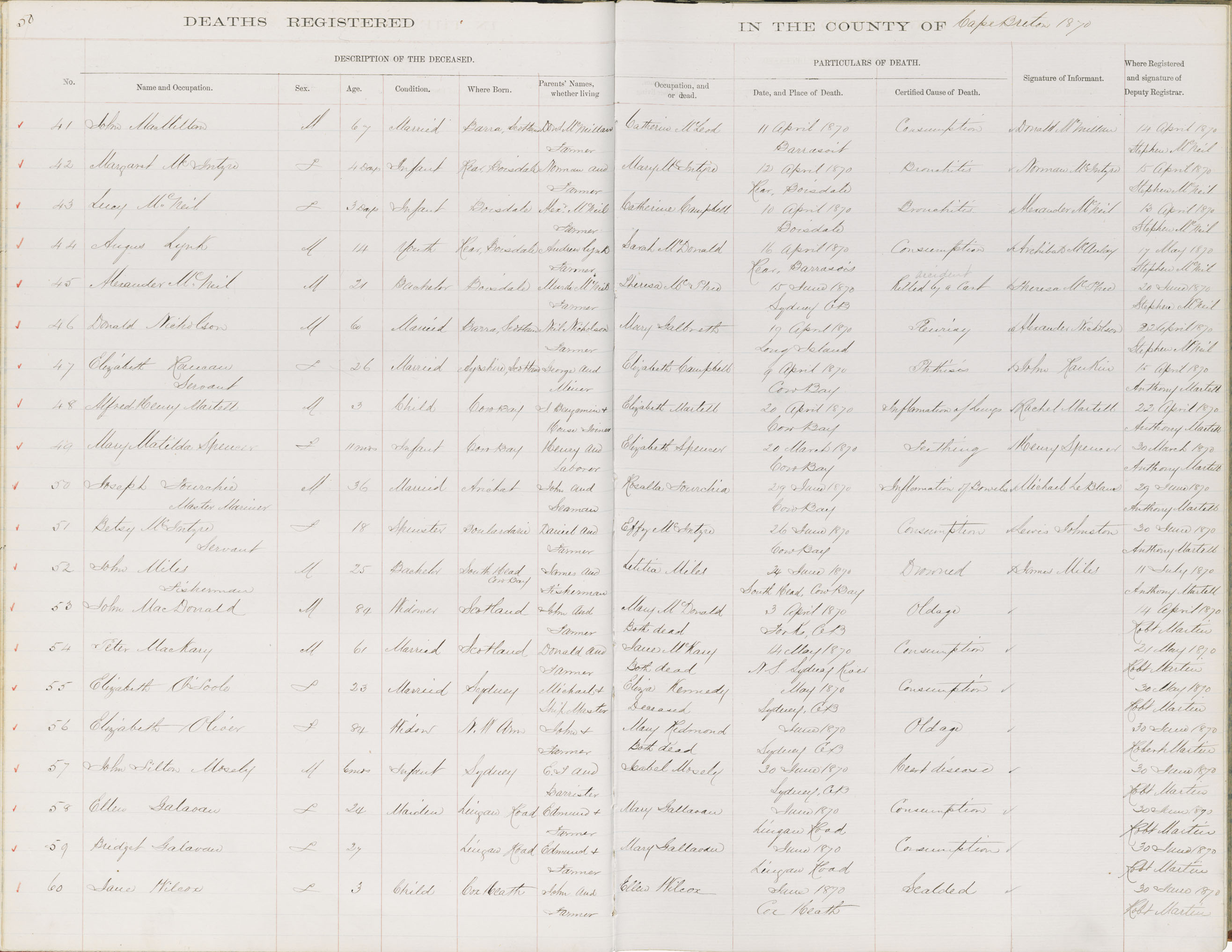 Death Registration: Year: 1870 book: 1803 page: 50 number: 53