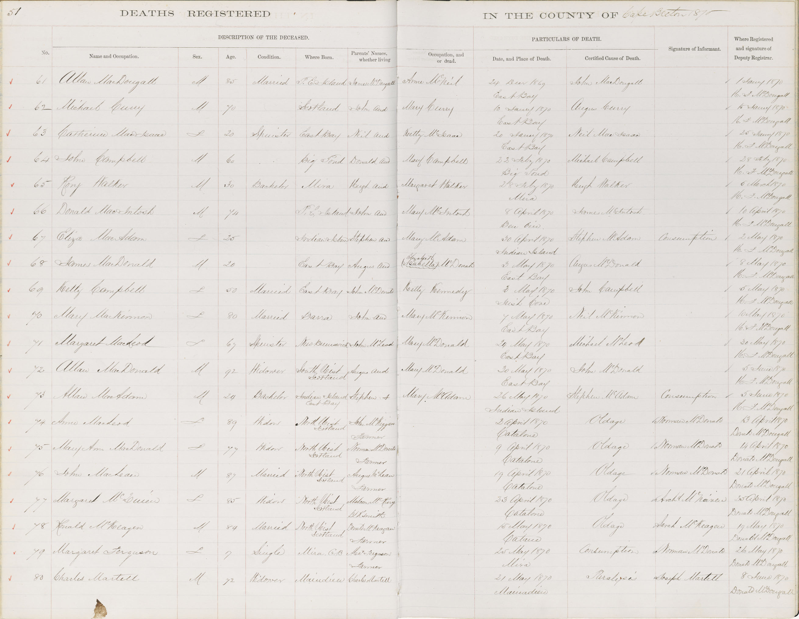 Death Registration: Year: 1870 book: 1803 page: 51 number: 72