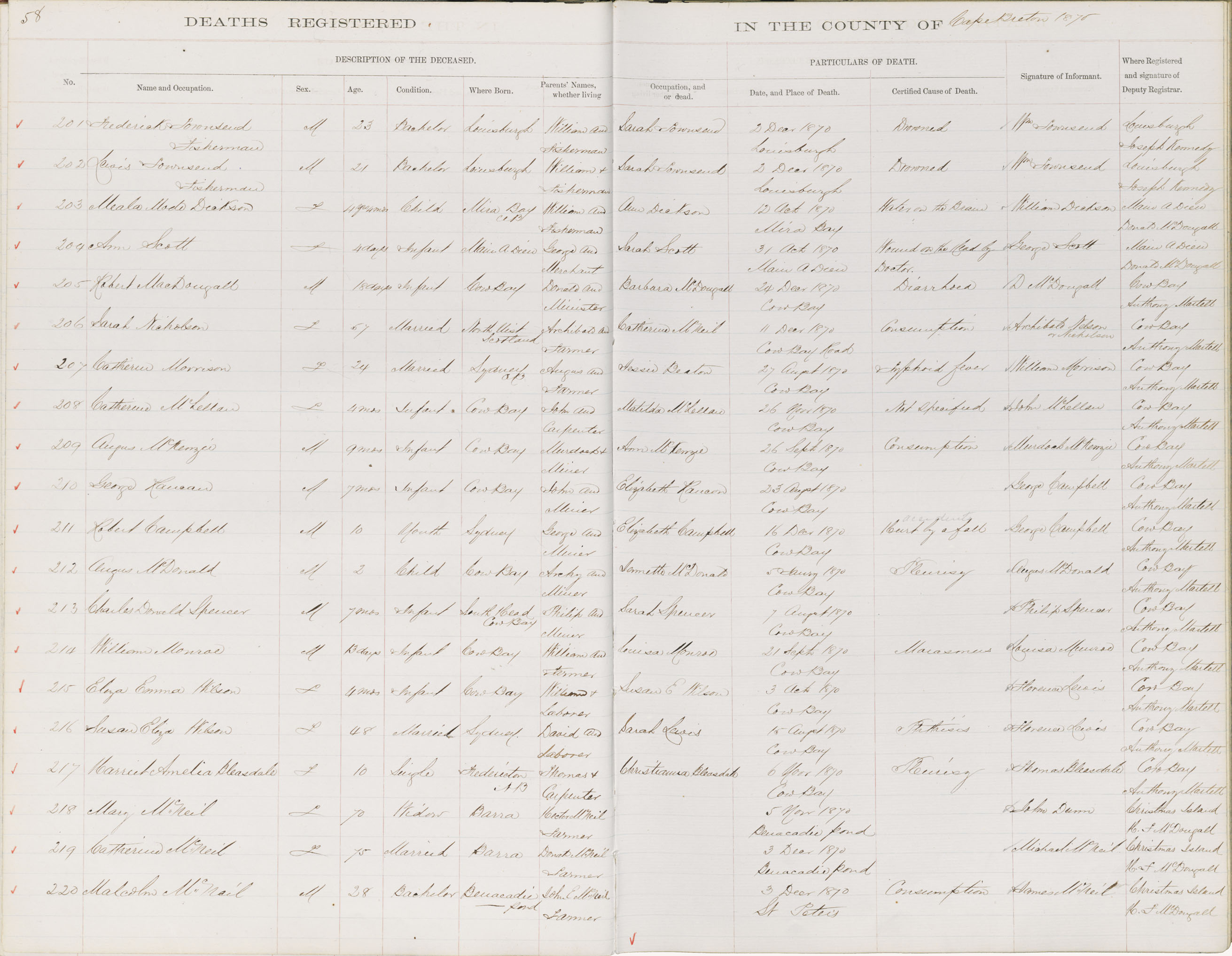 Death Registration: Year: 1870 book: 1803 page: 58 number: 201