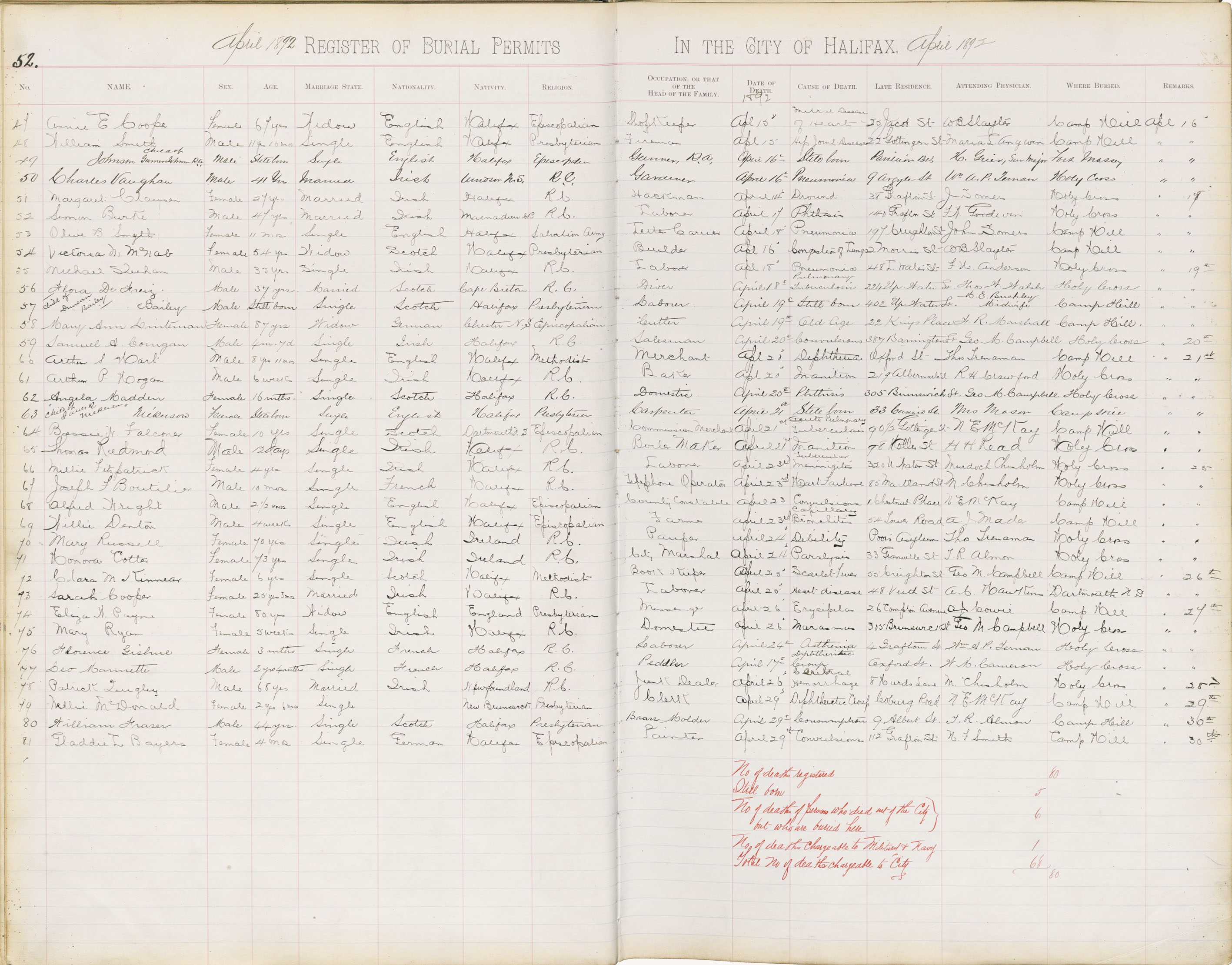 Death Registration: Year: 1892 book: 1892 page: 52 number: 81