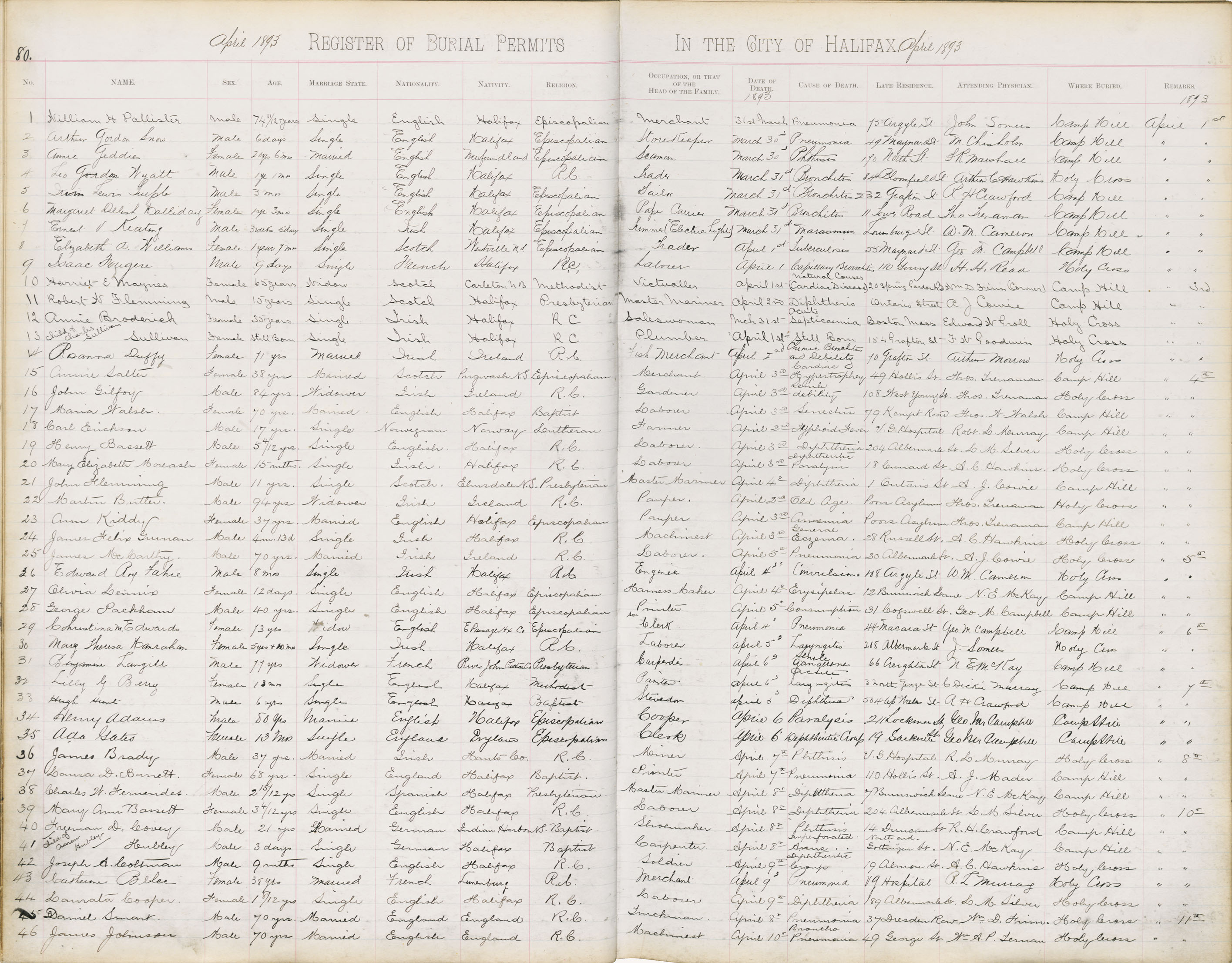 Death Registration: Year: 1893 book: 1893 page: 80 number: 46