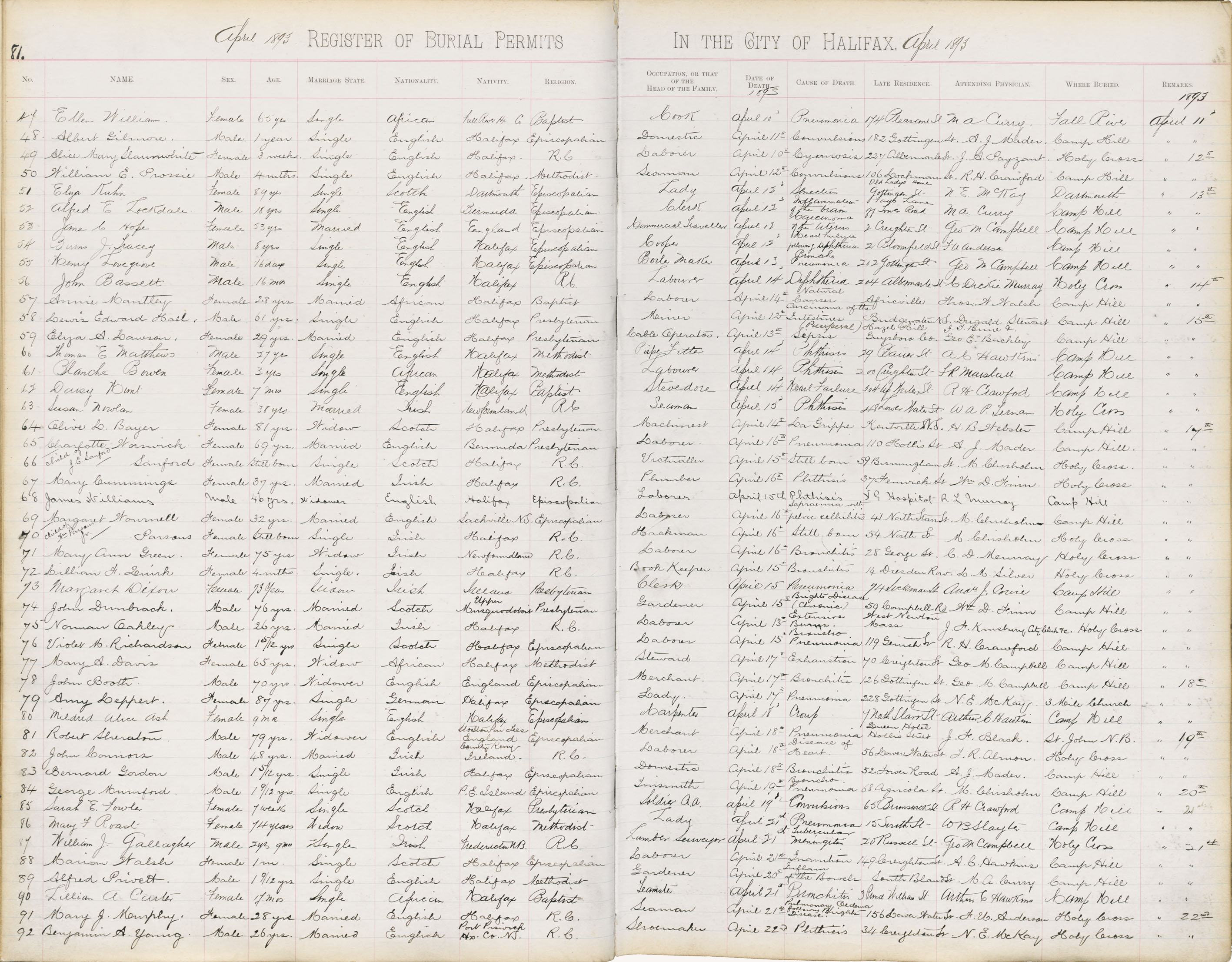 Death Registration: Year: 1893 book: 1893 page: 81 number: 92