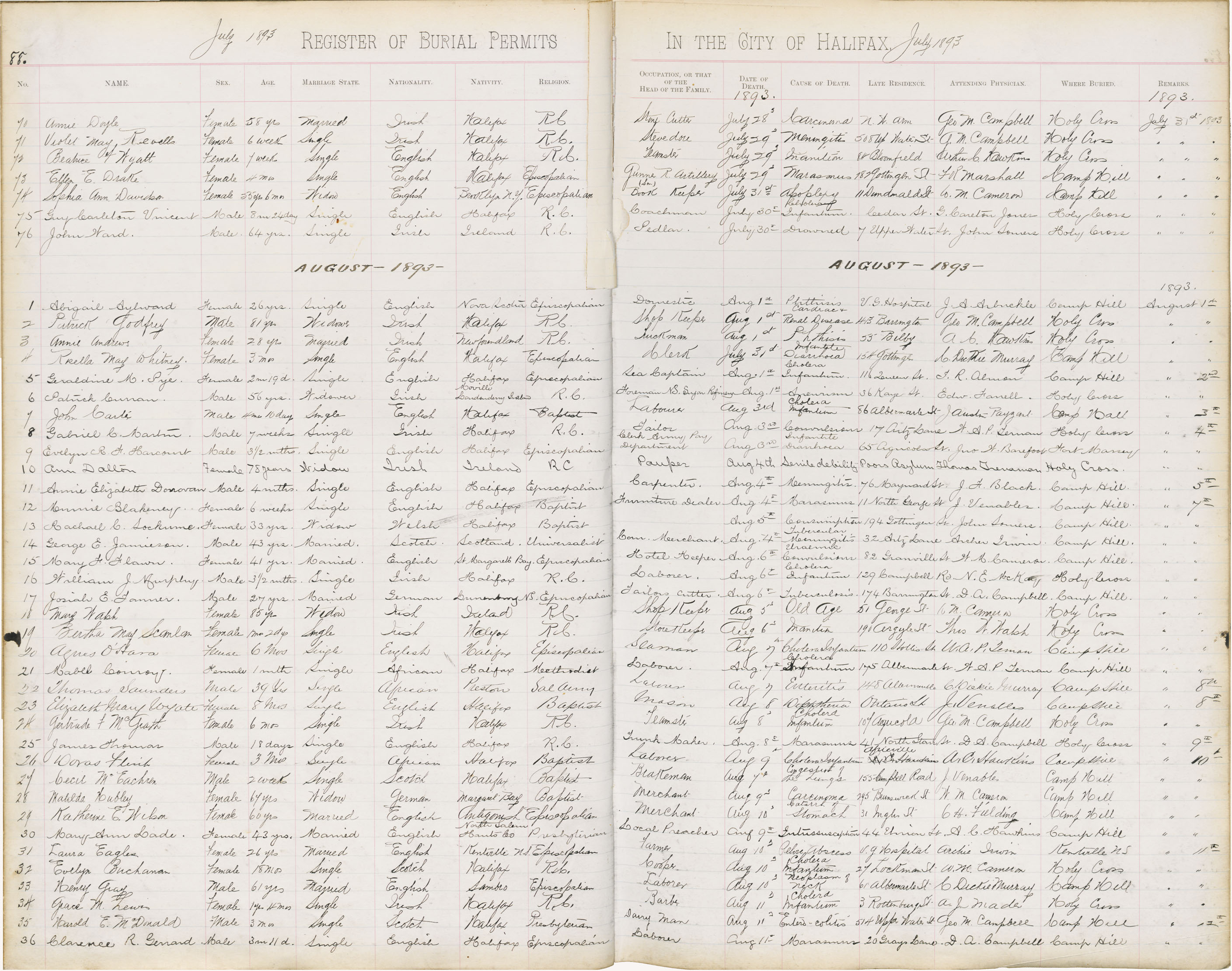 Death Registration: Year: 1893 book: 1893 page: 88 number: 36
