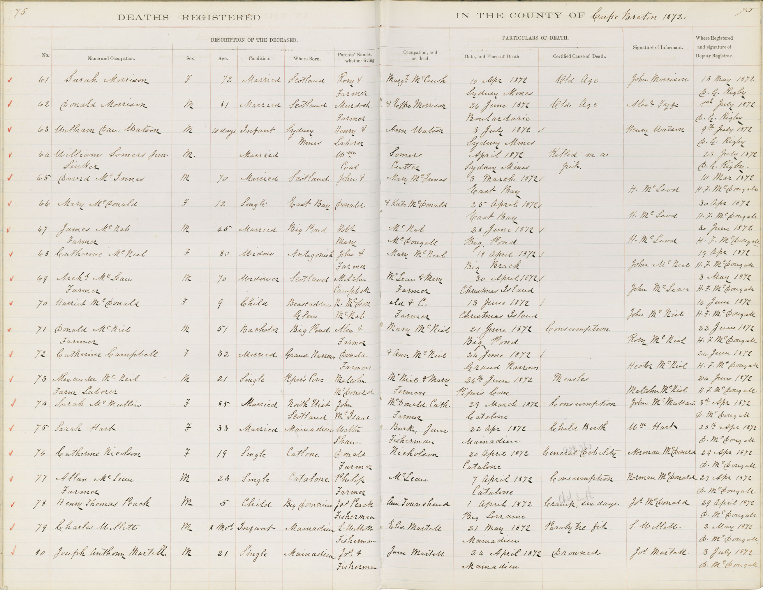 Death Registration: Year: 1872 book: 1803 page: 75 number: 61