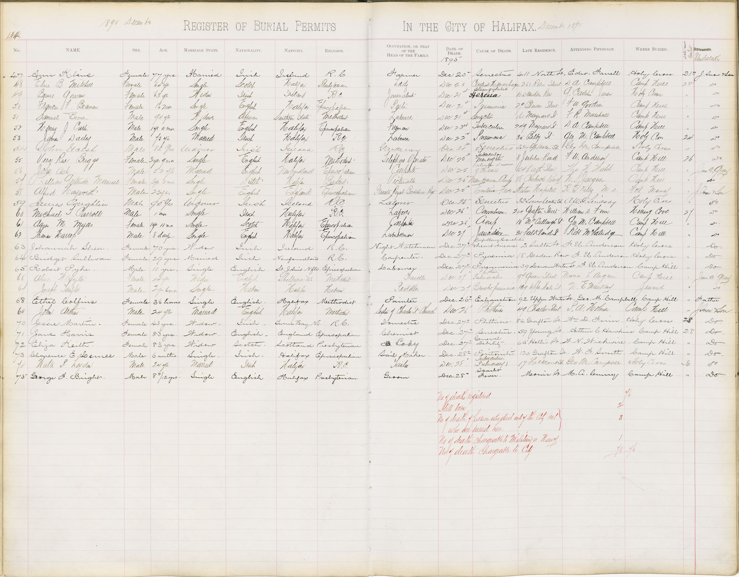 Death Registration: Year: 1895 book: 1895 page: 144 number: 75