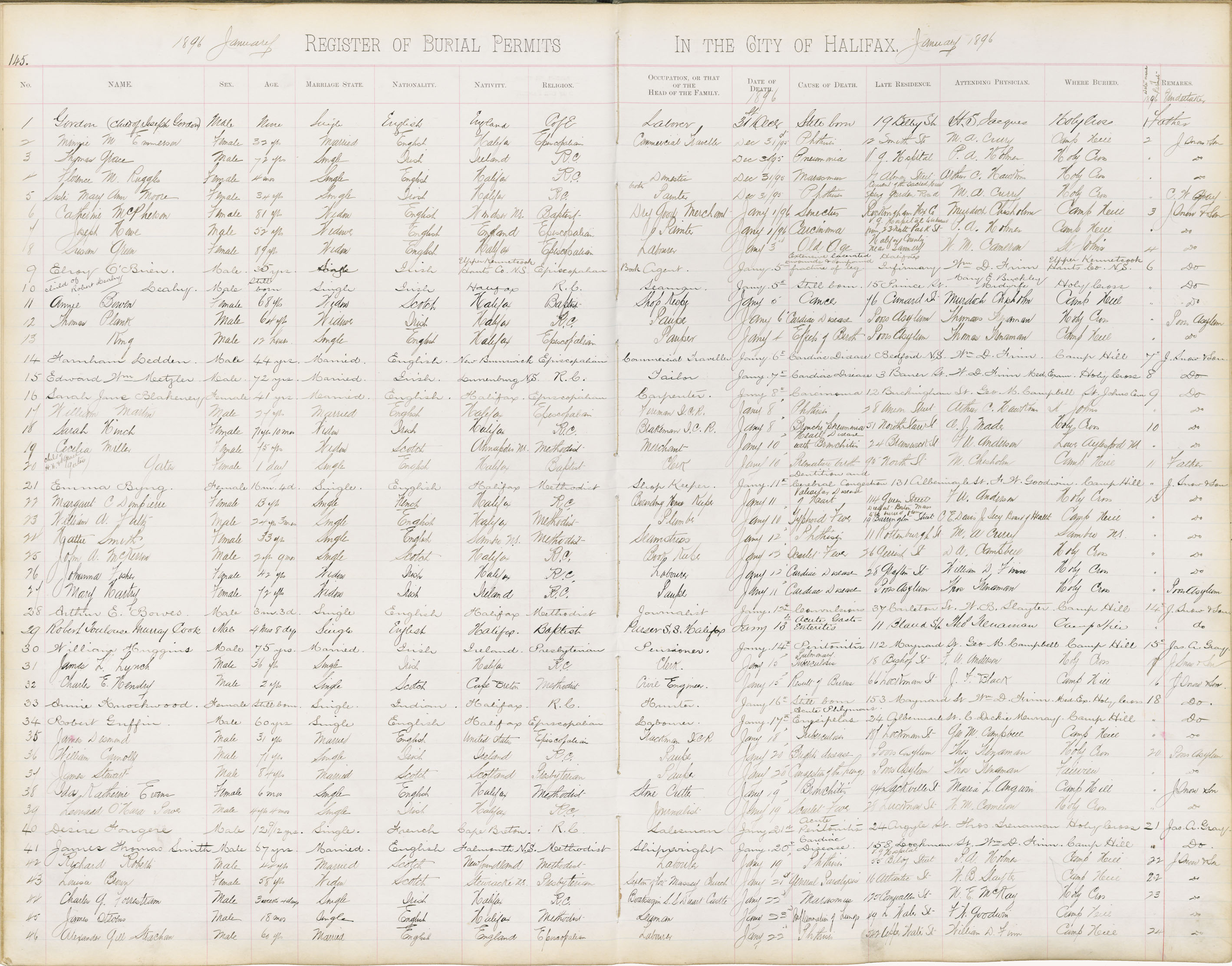 Death Registration: Year: 1896 book: 1896 page: 145 number: 46