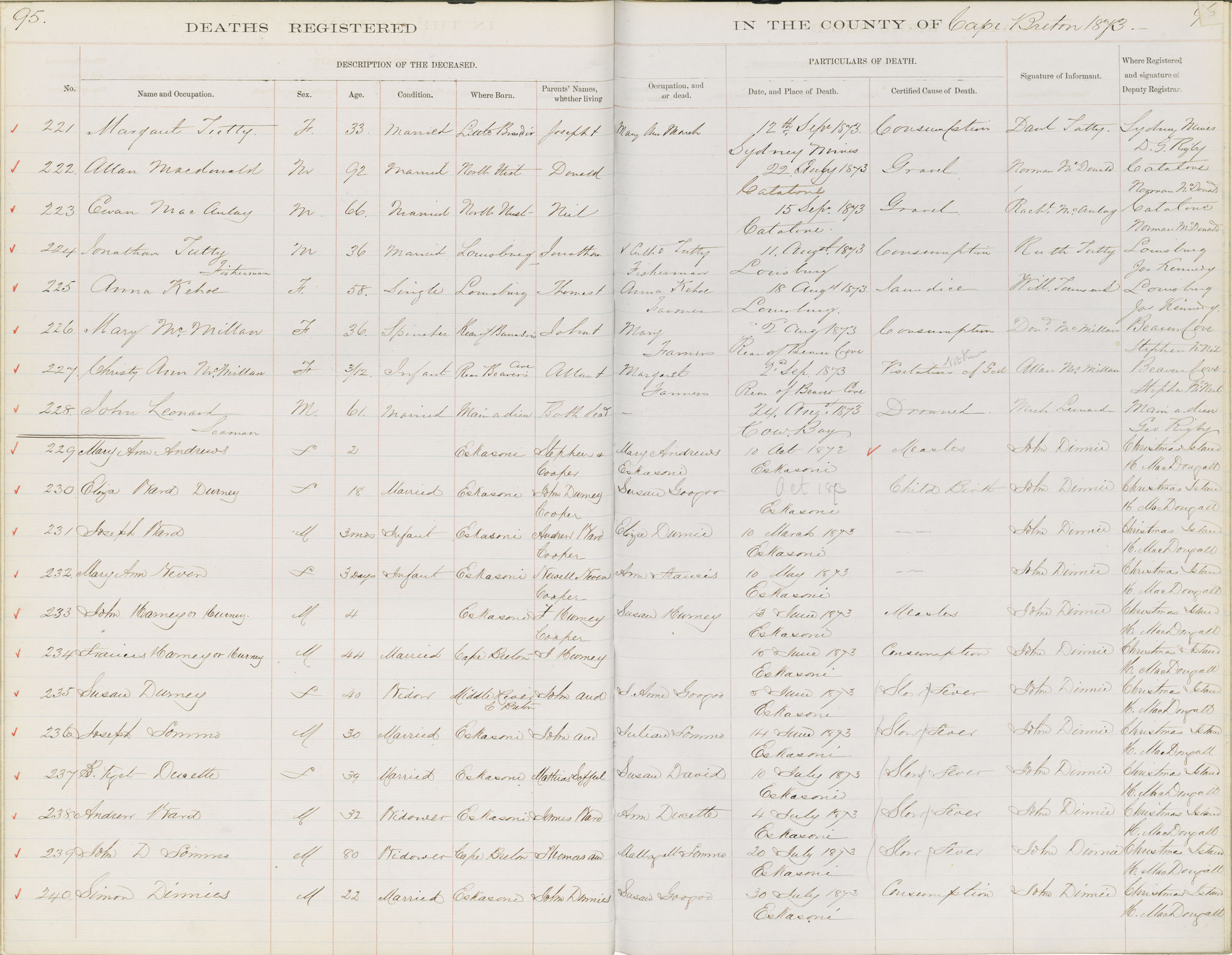 Death Registration: Year: 1873 book: 1803 page: 95 number: 222