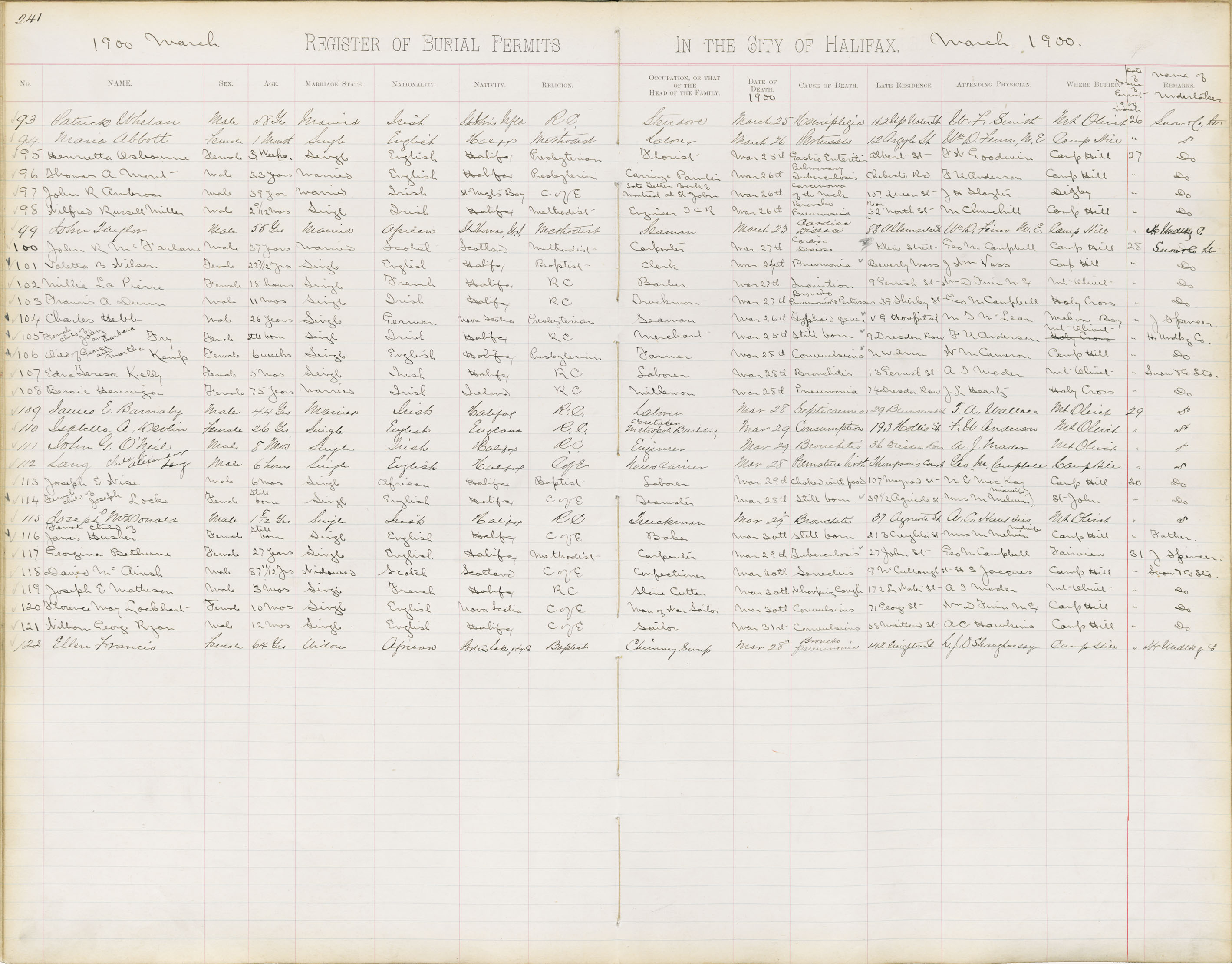 Death Registration: Year: 1900 book: 1900 page: 241 number: 122
