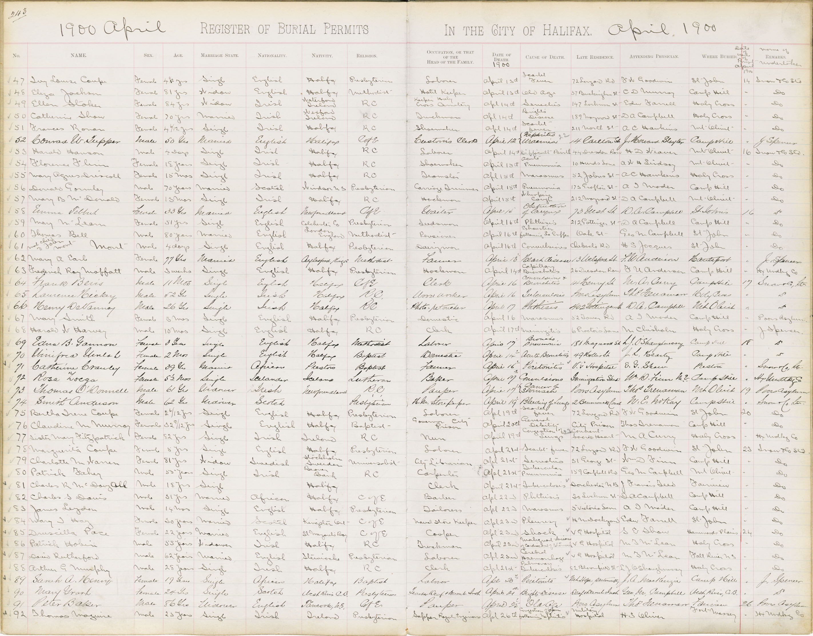 Death Registration: Year: 1900 book: 1900 page: 243 number: 47