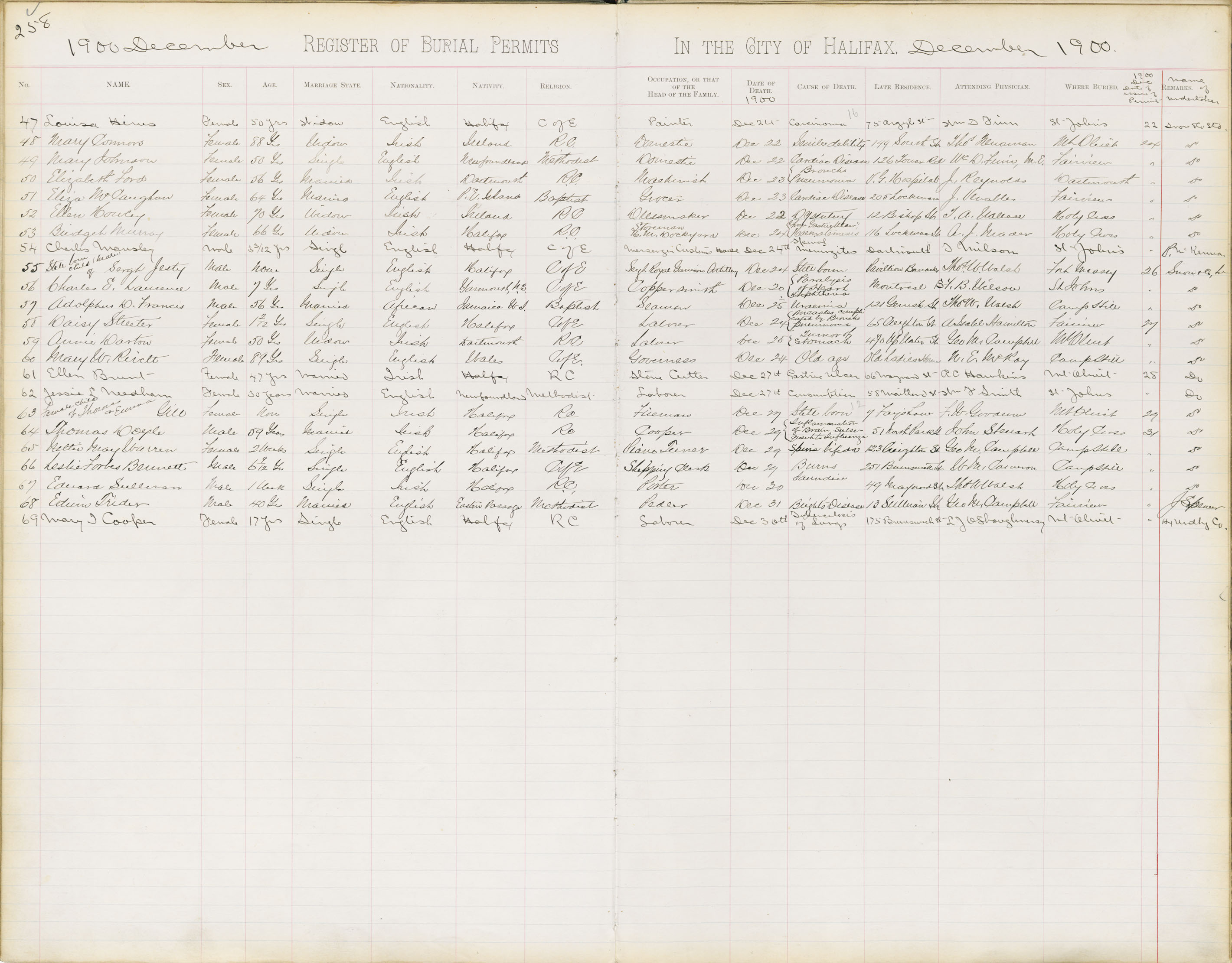 Death Registration: Year: 1900 book: 1900 page: 258 number: 69