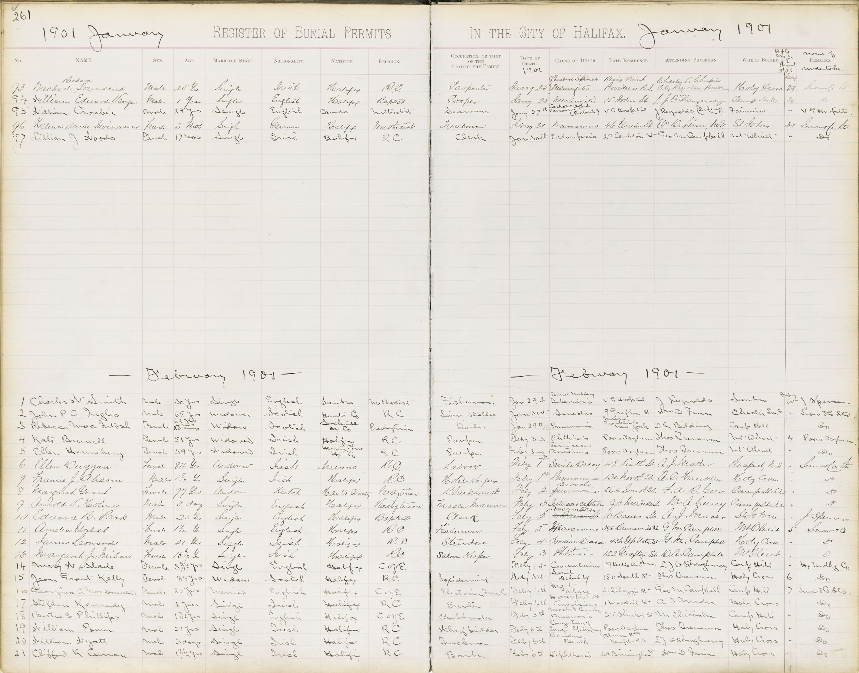 Death Registration: Year: 1901 book: 1901 page: 261 number: 16