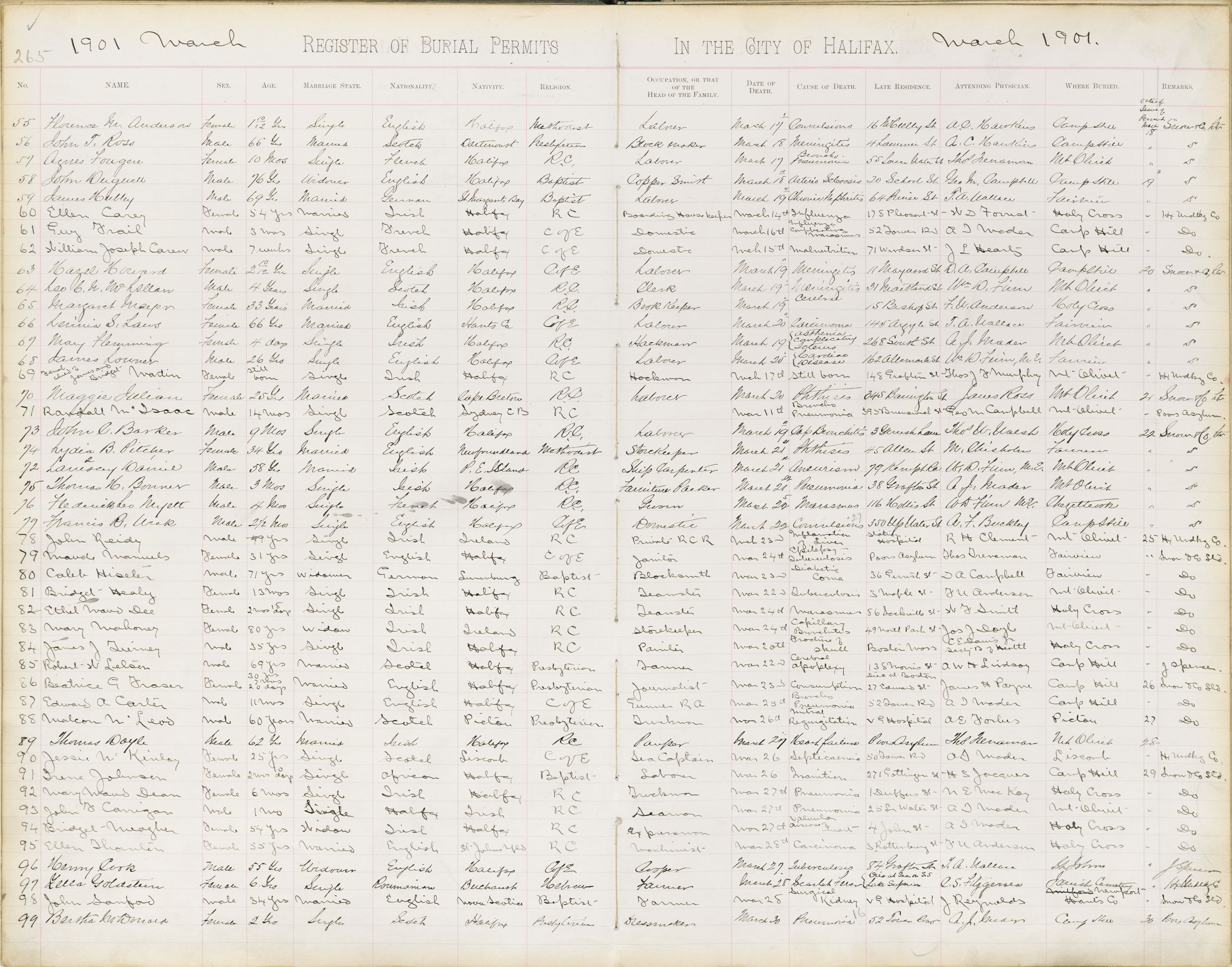 Death Registration: Year: 1901 book: 1901 page: 265 number: 55