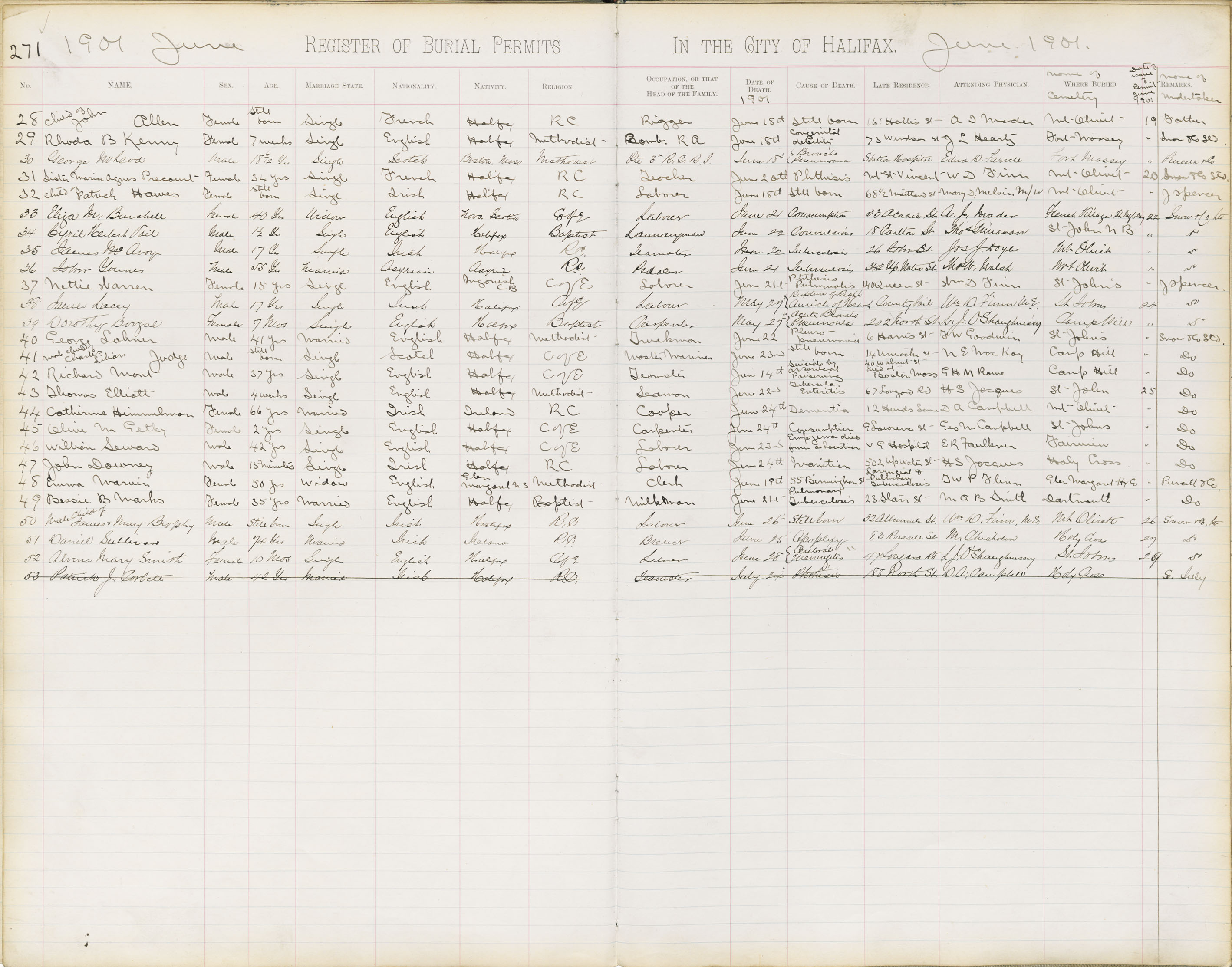 Death Registration: Year: 1901 book: 1901 page: 271 number: 28