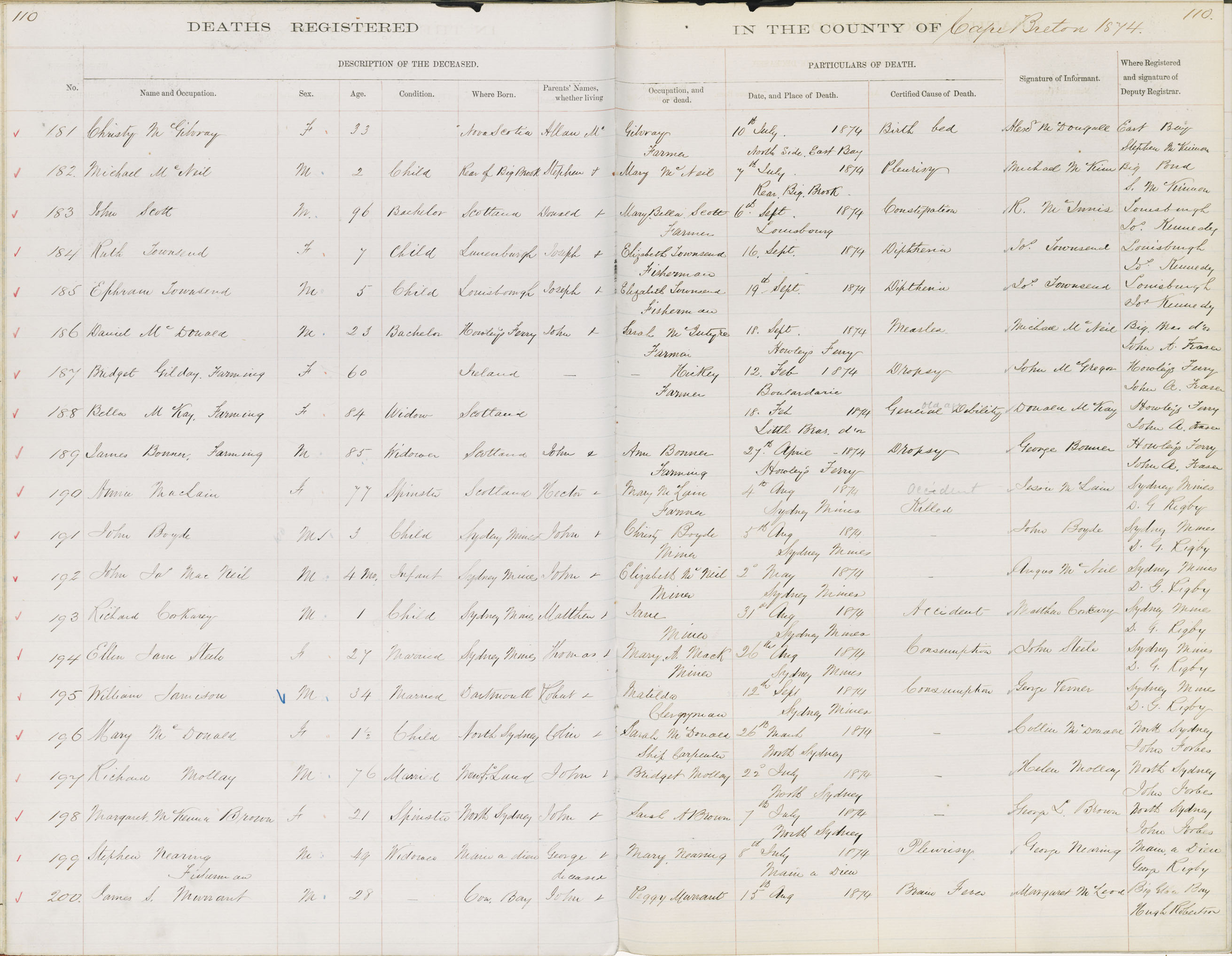 Death Registration: Year: 1874 book: 1803 page: 110 number: 181