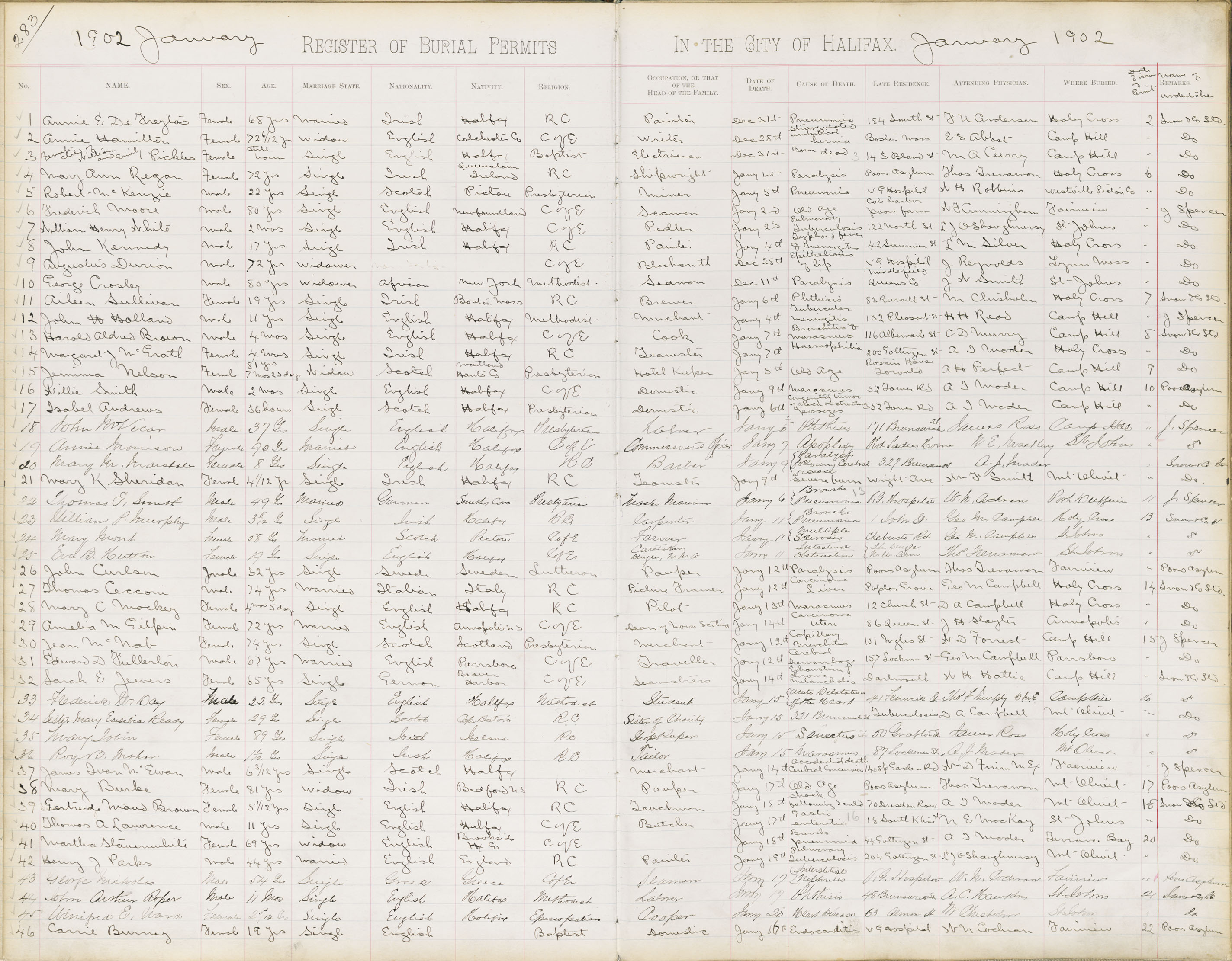 Death Registration: Year: 1902 book: 1902 page: 283 number: 46
